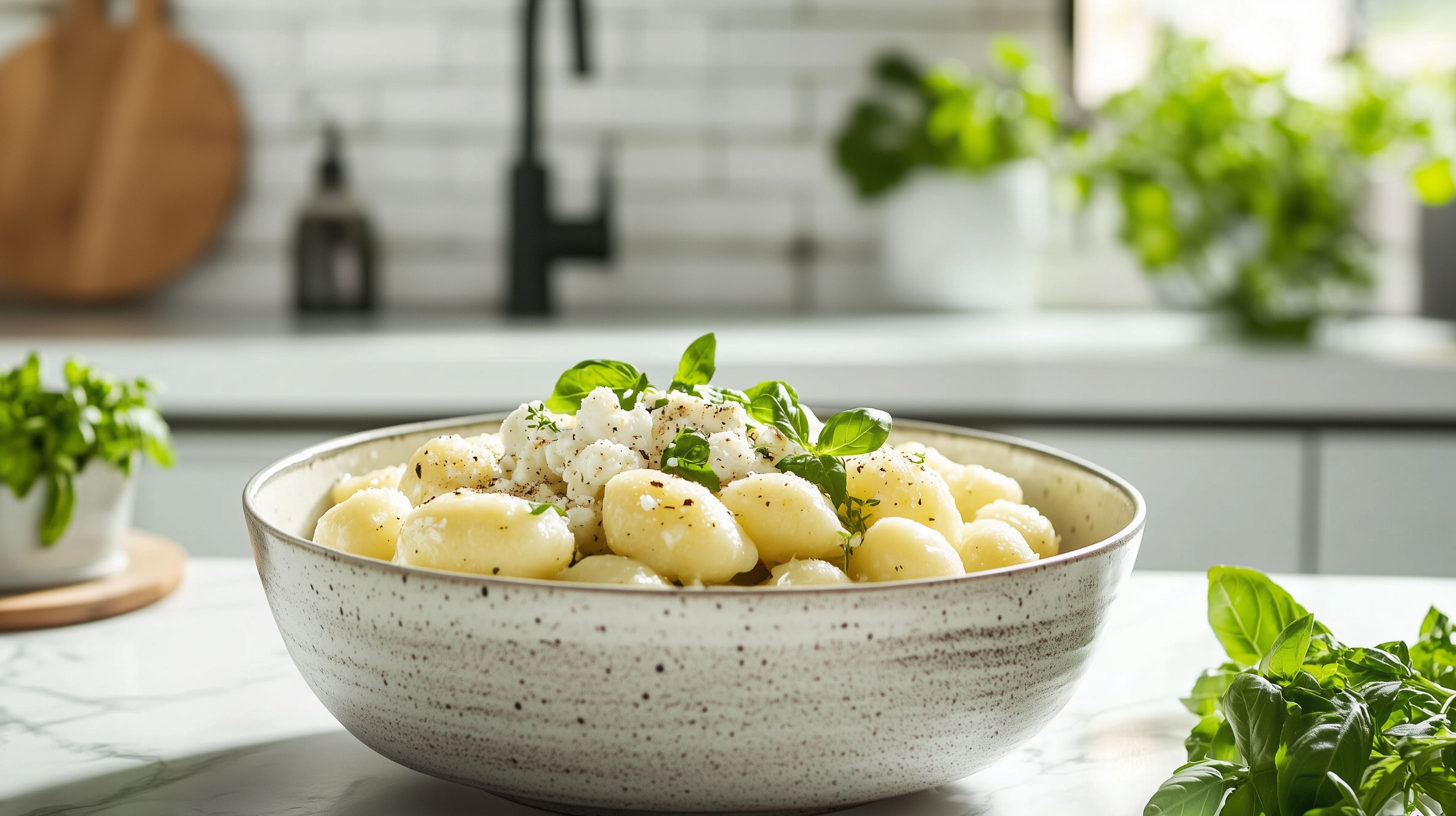 Dieses schmackhafte Foto zeigt einen leckeren Gnocchi-Salat mit Feta-Käse und frischen Kräutern in einer rustikalen Holzschüssel. Die Kombination der cremigen Gnocchi, des würzigen Fetakäses und der grünen Kräuternoten ergibt ein köstliches und ausgewogenes Gericht, das sich perfekt als Mittagessen oder Beilage eignet. Die natürlichen Farben, die rustikale Schüssel und die sorgfältige Anordnung der Zutaten machen dieses Foto zu einem stimmungsvollen und appetitanregenden Stock-Foto, das ideal für Blogs, Newsletter oder Social-Media-Beiträge geeignet ist. Dieses hochauflösende und kostenlose Foto unter Creative-Commons-Lizenz lässt sich vielfältig einsetzen.