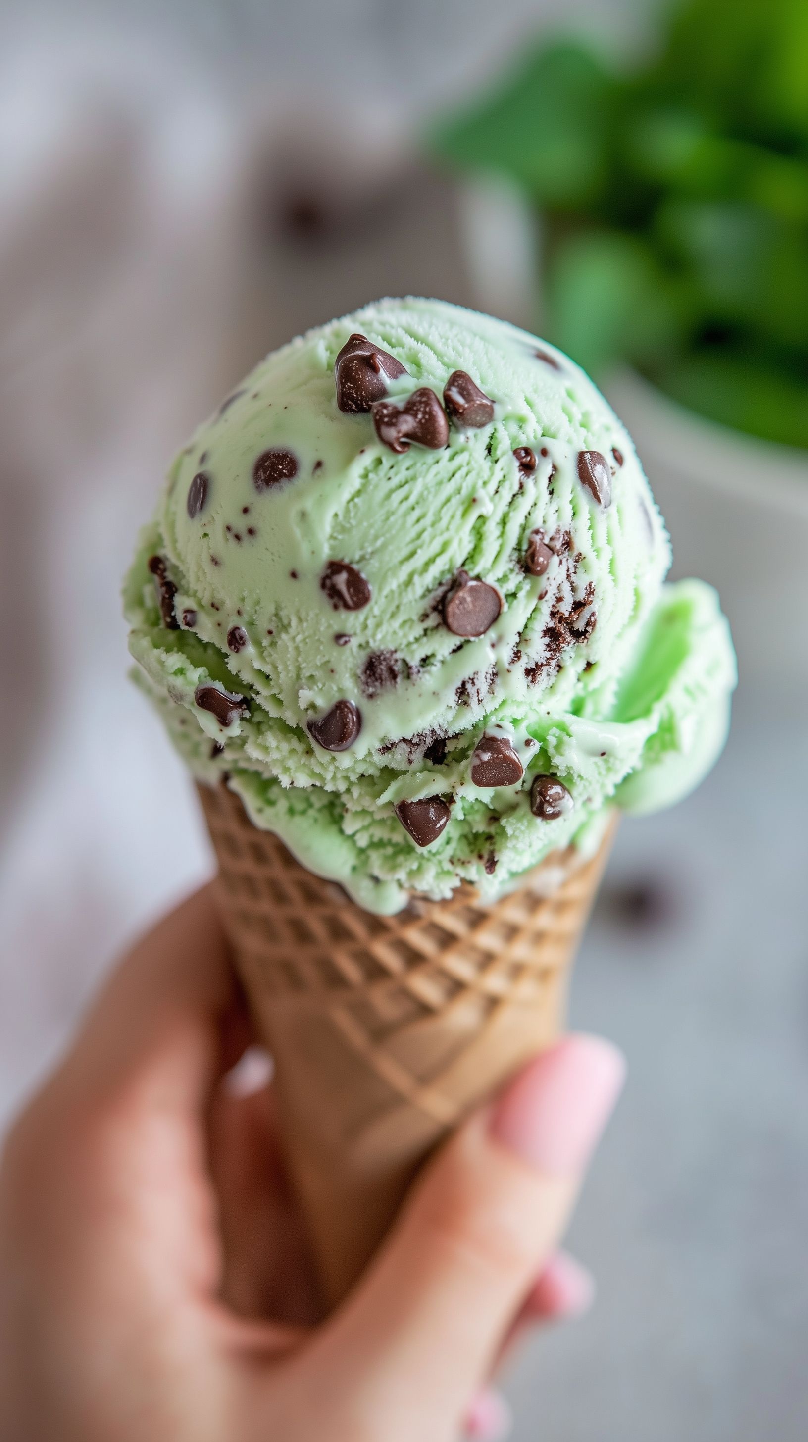 Das Bild zeigt einen Eisbecher mit einer erfrischenden Kugel grünen Minzeeises, garniert mit dunklen Schokoladenröllchen. Der Eisbecher befindet sich in einer Hand, sodass der Blick auf die Textur und Farben des Eises im Vordergrund steht. Die natürlichen Farben und die Detailaufnahme schaffen eine appetitliche und einladende Atmosphäre. Dieses Foto eignet sich hervorragend für die Verwendung in Blogs, Newslettern, Social-Media-Beiträgen oder Werbematerialien zum Thema Eis, Desserts oder Sommergenuss. Das hochauflösende, kostenlose Stockfoto steht unter einer Creative-Commons-Lizenz zur Verfügung.