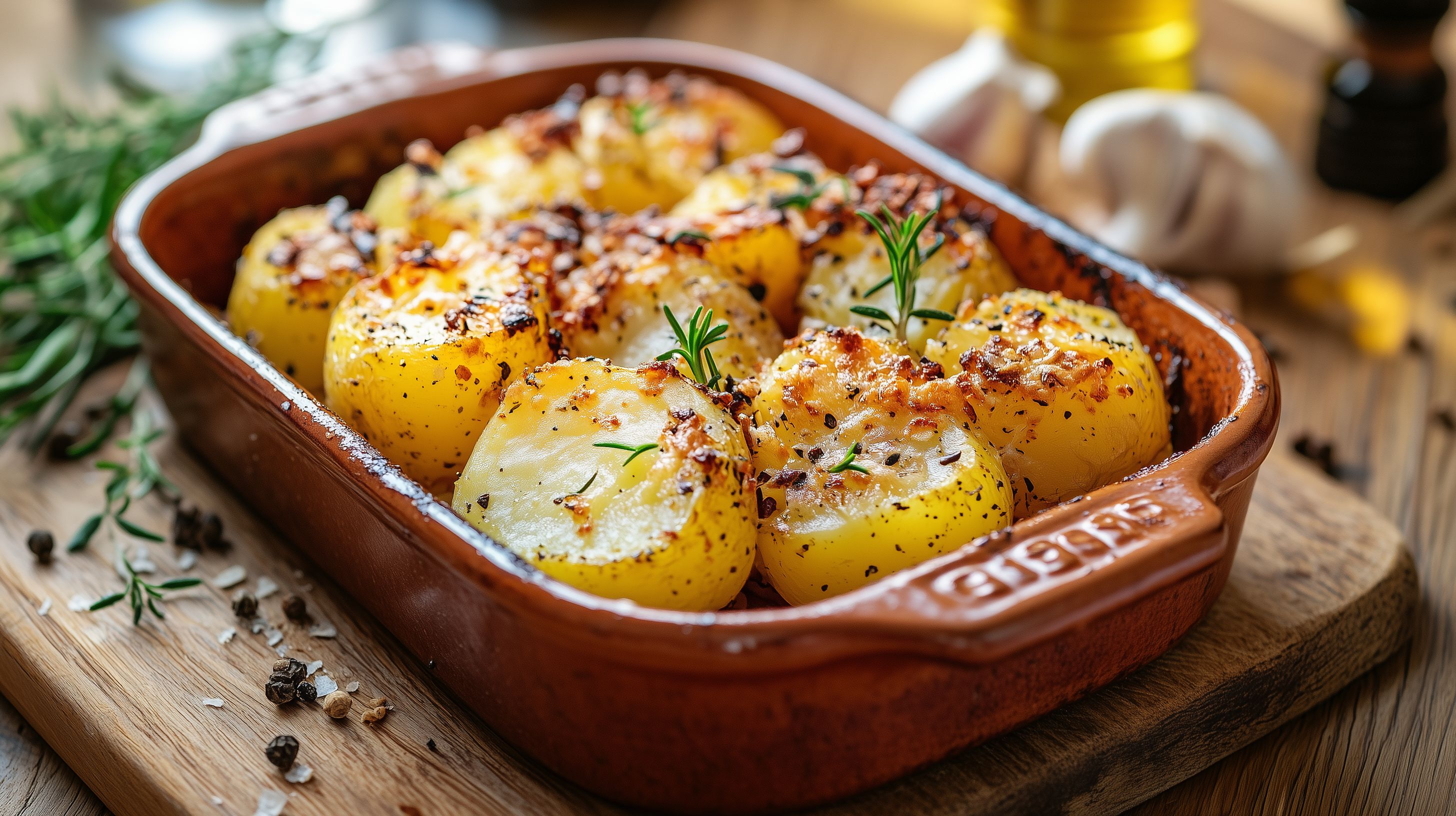 Ofenkartoffeln mit Kräutern und Knoblauch in rustikaler Schüssel von Marco Verch unter Creative Commons 2.0