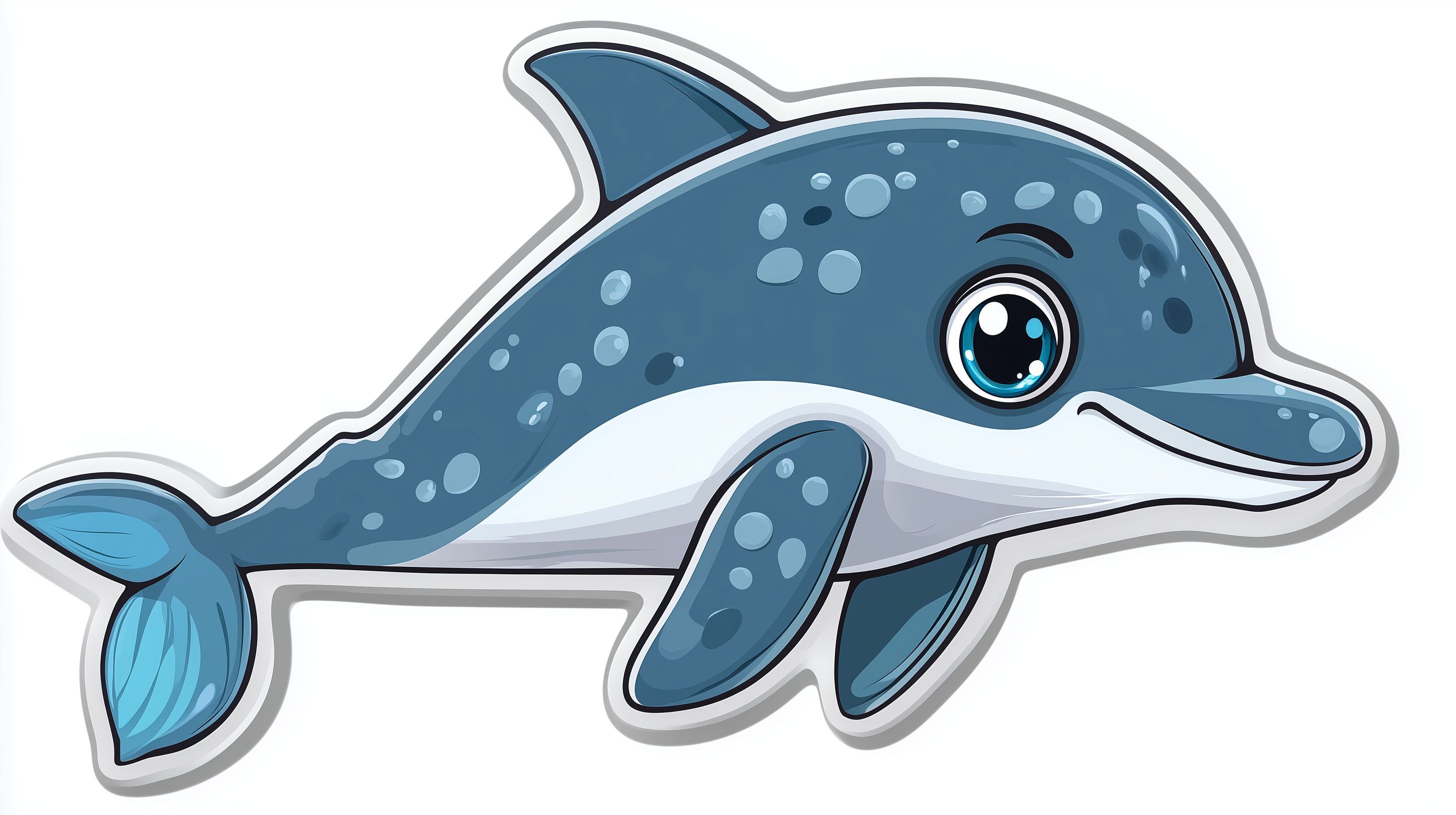 Dieses hochauflösende Stockfoto zeigt einen niedlichen, cartoon-artigen Delfin mit großen, ausdrucksvollen Augen. Die detaillierte, farbenfrohe Illustration eignet sich hervorragend für eine Vielzahl von Einsatzmöglichkeiten wie Kindergartendekorationen, Kinderbücher, Werbematerial, Social-Media-Posts oder Webseiten-Gestaltungen. Als kostenloses Stockfoto unter Creative-Commons-Lizenz können Sie das Bild frei und unkompliziert in Ihre Projekte integrieren.