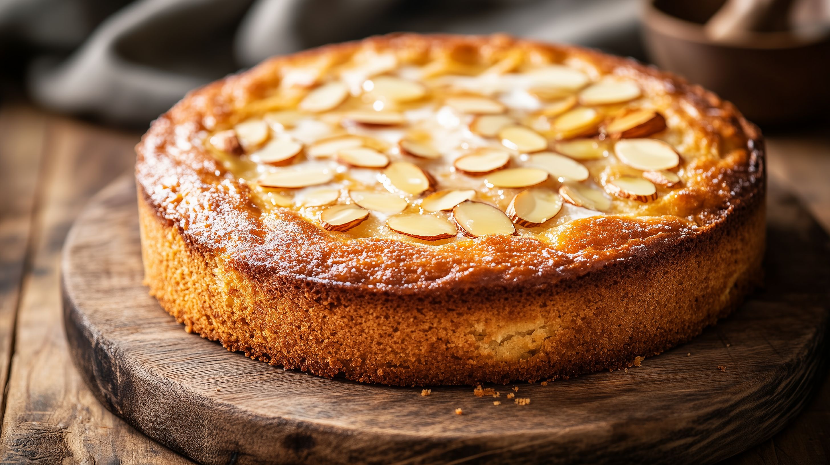 Dieses köstliche Foto zeigt einen frisch gebackenen, goldbraunen Blechkuchen, der mit knusprigen Mandelplättchen dekoriert ist. Der Kuchen wurde auf einem rustikalen Holzbrett fotografiert, was ihm eine natürliche und einladende Optik verleiht. Mit seiner appetitlichen Erscheinung und den feinen Mandelnoten eignet sich dieses Stockfoto perfekt für die Verwendung in Blogs, Newslettern, Social-Media-Beiträgen oder Werbematerialien zum Thema Backen, Desserts und leckere Snacks. Das Foto ist in hoher Auflösung verfügbar und kann unter der Creative-Commons-Lizenz kostenlos genutzt werden.