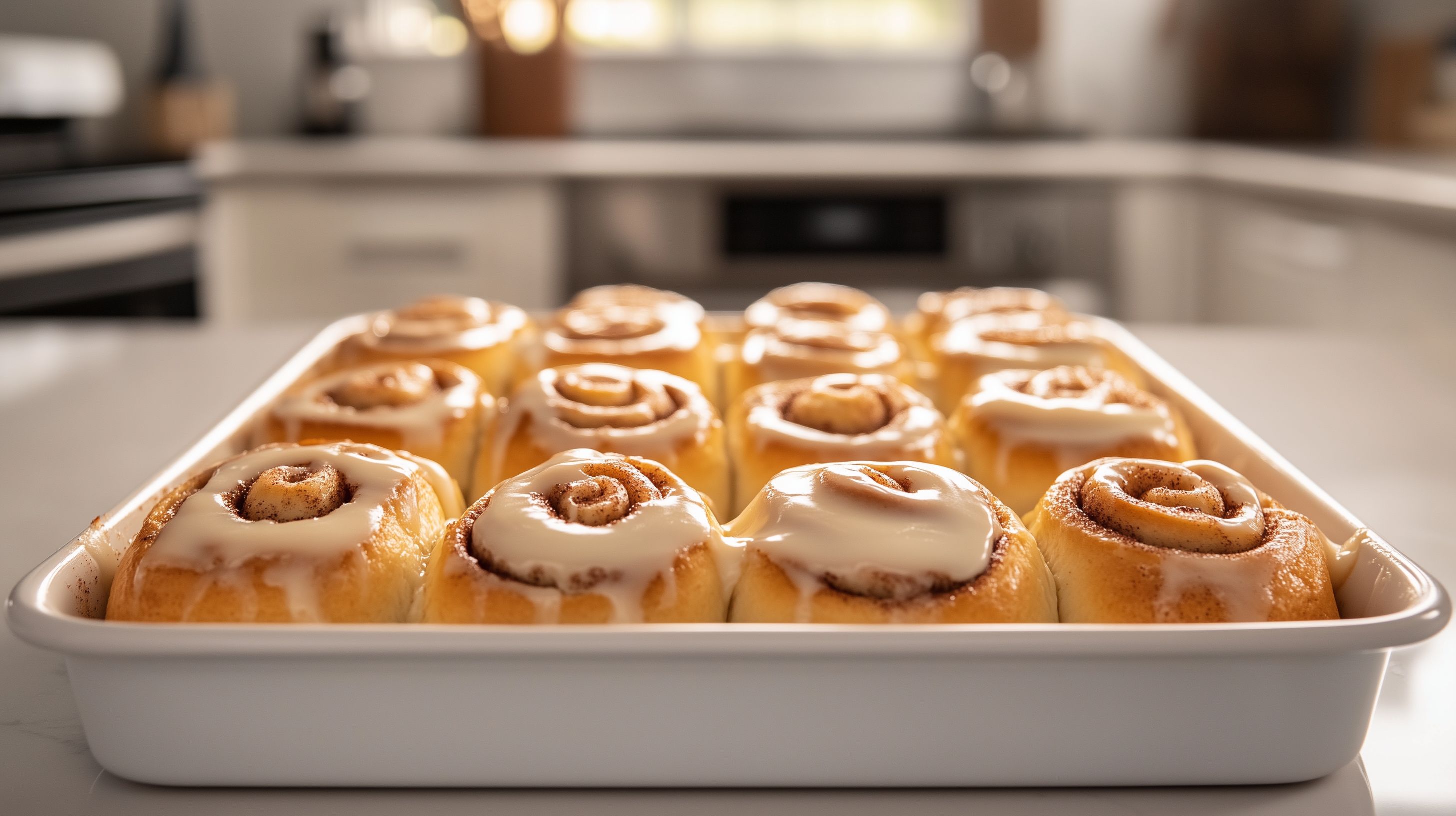 Dieses appetitliche Foto zeigt frisch gebackene Zimt-Schnecken, die in einer Kastenform auf einem Backblech serviert werden. Die Zimt-Rollen sind goldbraun gebacken und mit einem cremigen Zuckerguss überzogen. Sie strahlen Wärme und Gemütlichkeit aus und wecken Lust auf ein leckeres Frühstück oder einen Genussmoment. Das Foto eignet sich hervorragend als kostenloses Stockfoto in hoher Auflösung für Beiträge in Blogs, Newsletter oder Social-Media-Kanäle rund um die Themen Backwaren, Kulinarik und Genuss. Die Lizenz unter Creative Commons erlaubt eine vielseitige Nutzung des Bildes.