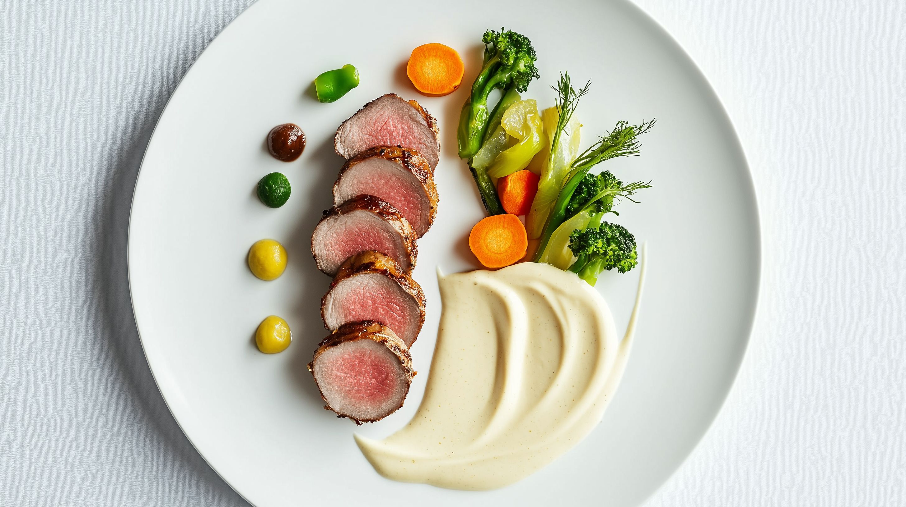 Dieses appetitliche Bild zeigt ein Fleischgericht, bestehend aus rosa-gegartem Rindfleisch, das auf einem weißen Teller angerichtet ist. Umgeben ist das Fleisch von frischem Gemüse wie Brokkoli, Karotten und Petersilie. Ergänzt wird das Gericht durch eine Portion cremiges Kartoffelpüree. Die natürliche Farbgebung und die rustikale Präsentation machen dieses Foto zu einem stimmungsvollen Bild, das sich ideal für die Verwendung in Blogs, Newslettern oder Werbematerialien zu den Themen gesunde Ernährung, Kulinarik oder Gastronomie eignet. Als kostenloses, hochauflösendes Stockfoto unter Creative-Commons-Lizenz steht es für vielfältige Einsatzmöglichkeiten zur Verfügung.