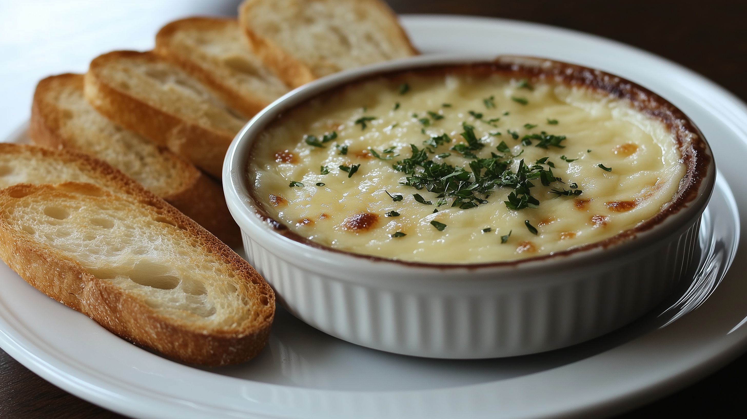 Dieses Foto zeigt einen leckeren Käsedip in einer rustikalen Schüssel, umgeben von knusprigen Baguette-Scheiben. Das Gericht präsentiert sich in einem appetitlichen, stimmungsvollen Arrangement. Die cremige Konsistenz des Dips und die goldbraune Farbe des frischen Brots wirken besonders verführerisch. Das Foto eignet sich hervorragend als Stockfoto für Beiträge zu Themen wie Kochen, Gastronomie, Kulinarik oder herzhafte Snacks. Mit seiner hohen Auflösung und der kreativen, stilvollen Komposition ist dieses Bild ein kostenloses, frei verwendbares Stockfoto unter Creative-Commons-Lizenz.