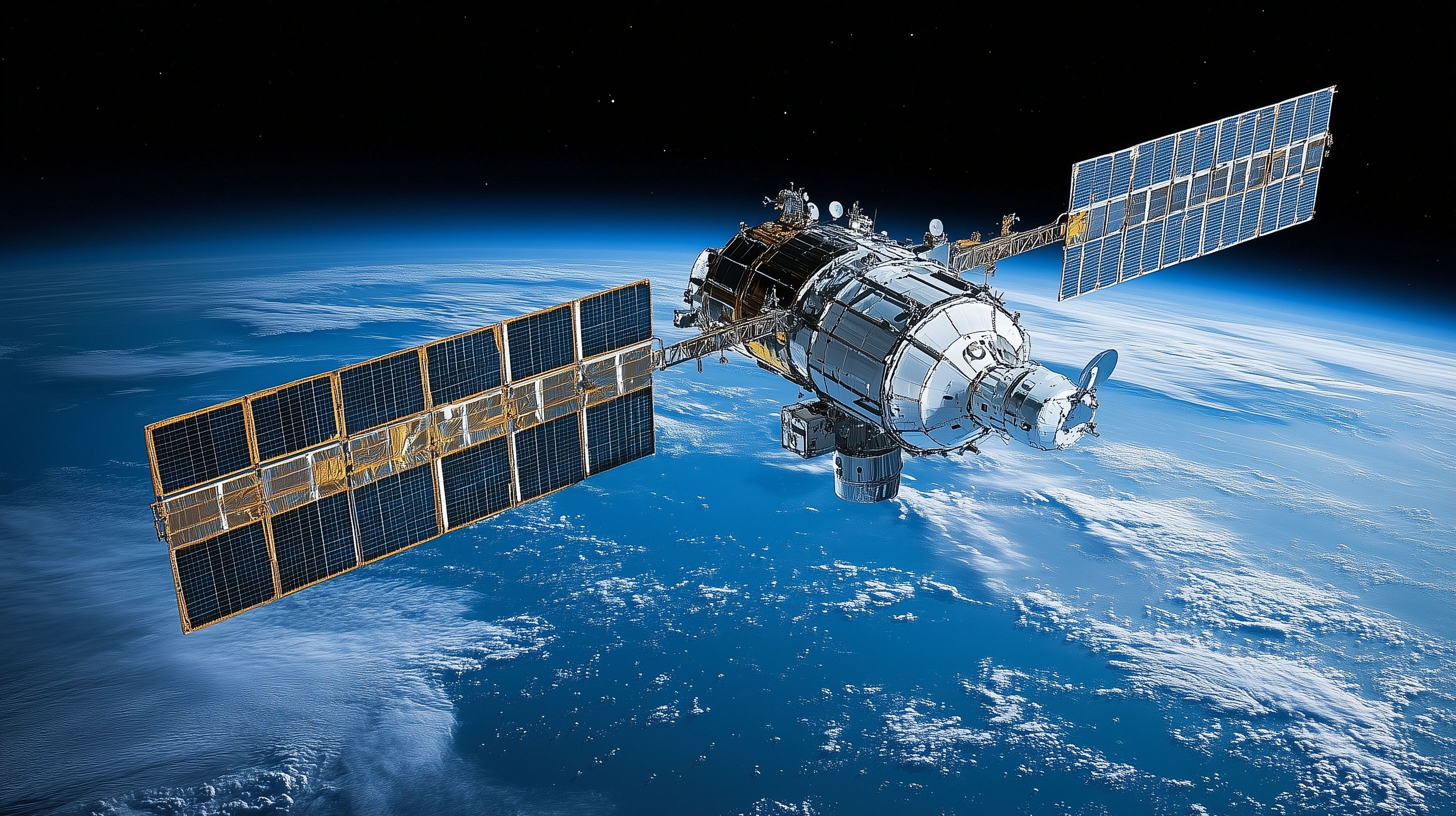 Das Bild zeigt eine Aufnahme der Internationalen Raumstation (ISS) aus der Perspektive des Weltraums. Die ISS schwebt majestätisch vor dem Hintergrund der blauen Erdatmosphäre, die sich von oben betrachtet wie ein riesiger, blauer Marmor abzeichnet. Die Solarpanele der Raumstation sind deutlich sichtbar und erzeugen offenbar durch die Reflektion des Sonnenlichts ein besonders strahlendes Erscheinungsbild. Das faszinierende Foto vermittelt einen beeindruckenden Blick auf unser Heimatplanet Erde und die technologischen Errungenschaften der Raumfahrt. Es eignet sich hervorragend als hochwertiges Stockfoto für Blogs, Newsletter, soziale Medien oder Werbezwecke rund um Themen wie Wissenschaft, Technik, Weltraumerkundung und Nachhaltigkeit. Dieses kostenlose Foto unter Creative-Commons-Lizenz steht in hoher Auflösung zur Verfügung.