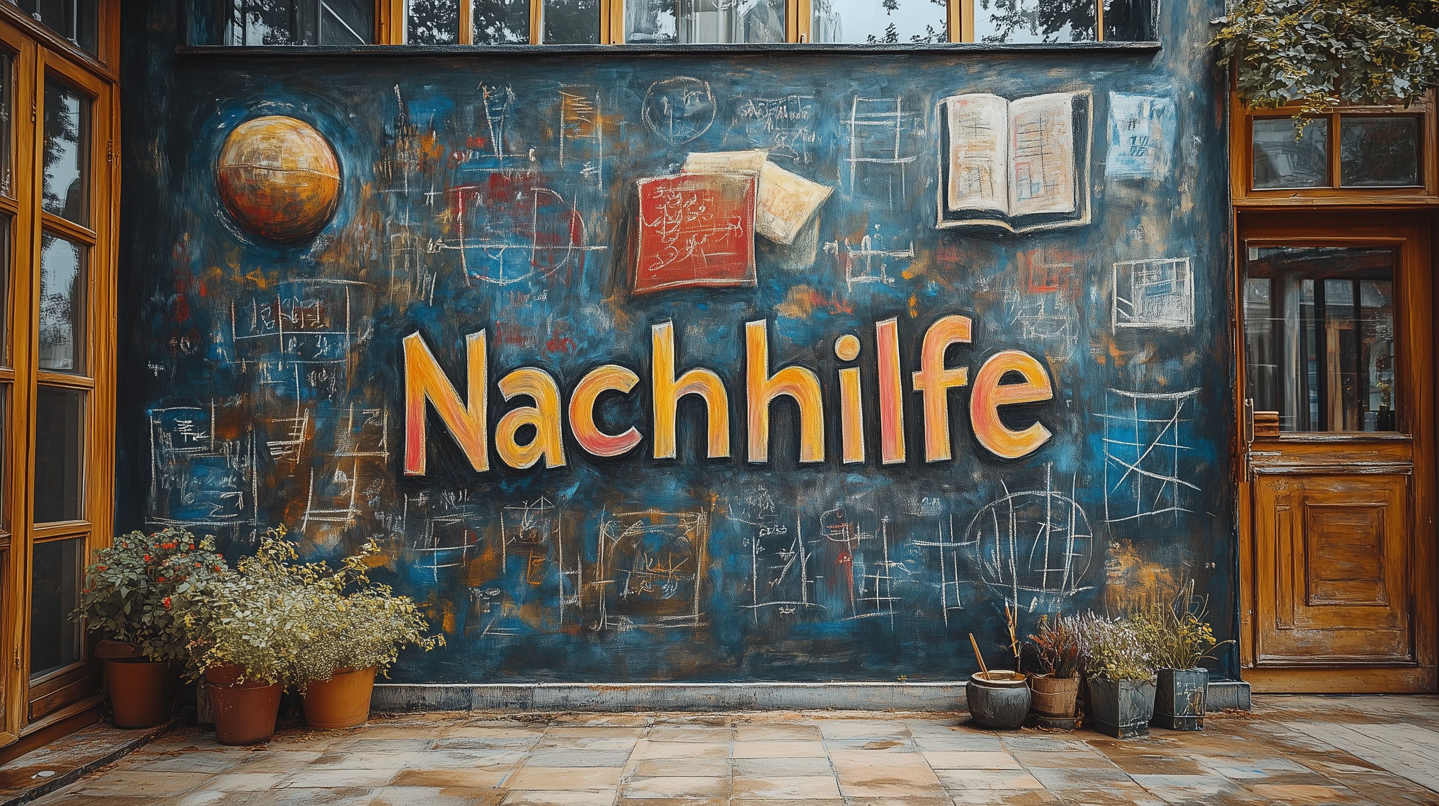 Dieses Foto zeigt ein kreativ gestaltetes Wandbild, das den Bereich der Nachhilfe thematisiert. Auf einer dunklen Tafelwand sind bunte, grobe Zeichnungen und mathematische Formeln zu sehen, die an eine Schultafel erinnern. Inmitten der Grafiken finden sich ein offenes Buch und ein Globus, die für den Bildungskontext stehen. Das Zentrum des Bildes nimmt der Schriftzug 'Nachhilfe' ein, der in kräftigen orangefarbenen Buchstaben hervorsticht. Die Komposition wirkt dynamisch und kreativ, als würde das Bild die Energie und Vielseitigkeit des Lernens symbolisieren. Dieses Stockfoto eignet sich hervorragend für den Einsatz in Blogs, Newslettern oder Werbematerialien rund um Themen wie Bildung, Lernen oder Nachhilfe. Es ist in hoher Auflösung verfügbar und steht unter einer Creative-Commons-Lizenz zur Verfügung.