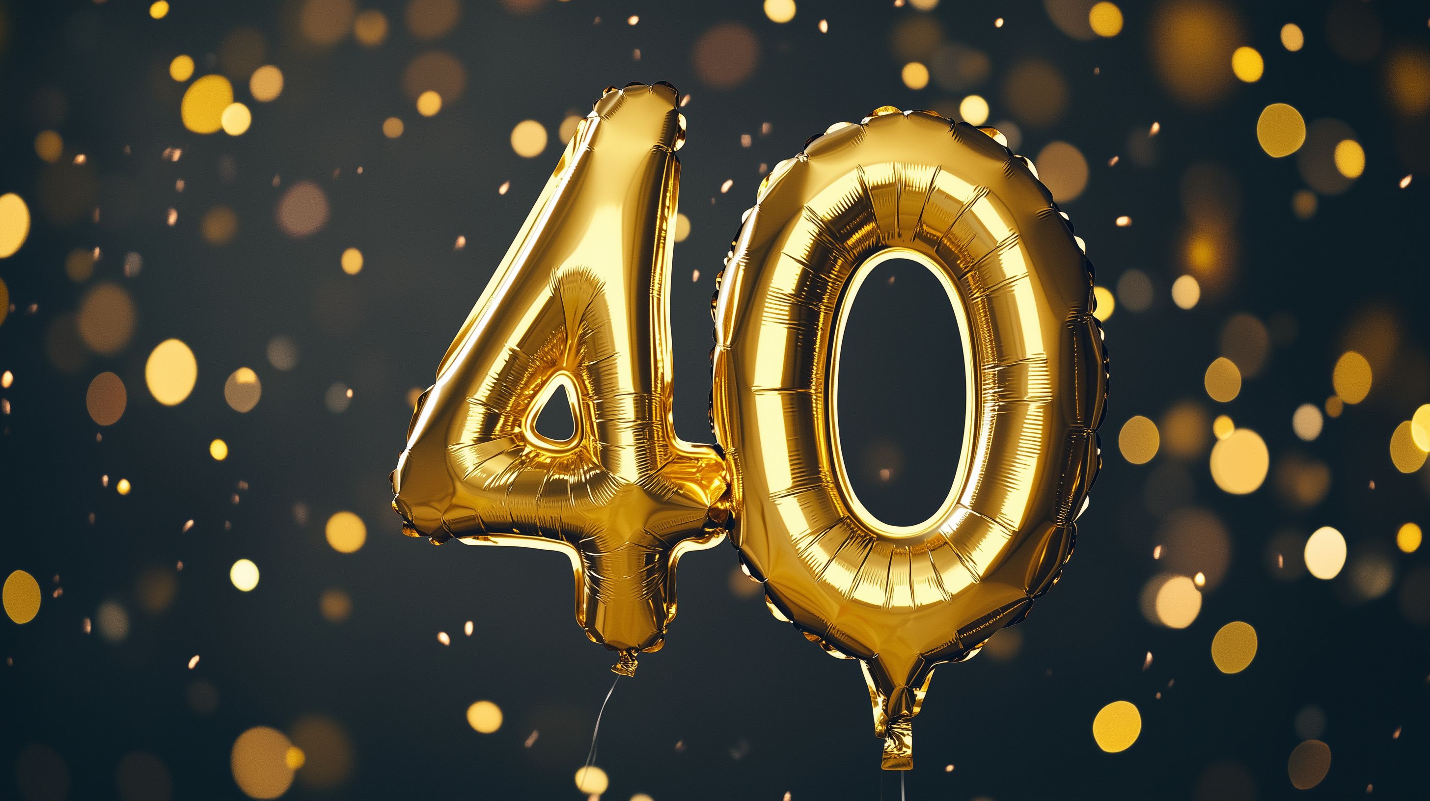 Dieses eindrucksvolle Foto zeigt zwei goldene, aufgeblasene Luftballons in der Form der Zahl 40 vor einem funkelnden, schwarzen Hintergrund. Die perfekt geformten Ballons erzeugen ein luxuriöses, feierliches Ambiente und vermitteln Freude, Stolz und Erfolg. Dieses Stockfoto eignet sich hervorragend für Geburtstagskarten, Werbematerialien, Social-Media-Posts und vieles mehr. Die hochauflösende Datei ist kostenlos und unter der Creative-Commons-Lizenz verfügbar.