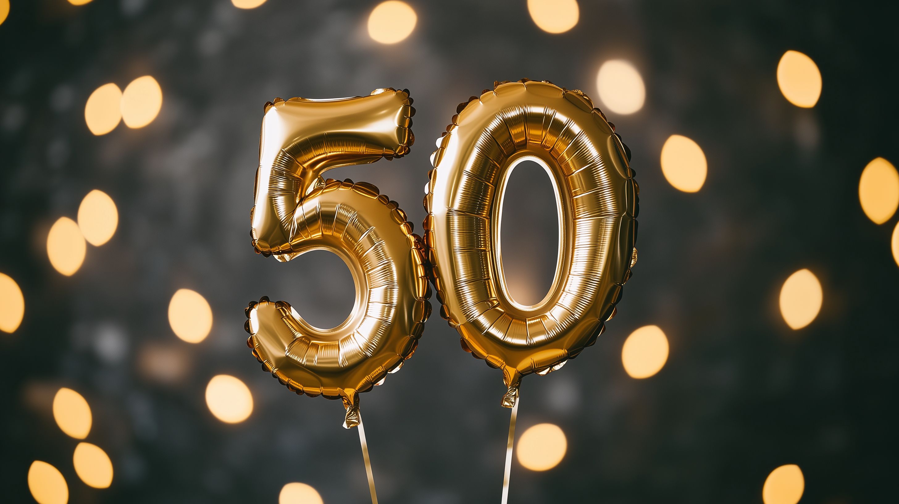 Dieses Foto zeigt zwei goldene, aufblasbare Ballons, die die Zahl 50 darstellen, vor einem funkelnden, dunkelbraunen Hintergrund mit unscharfen Lichtpunkten. Die Ballons heben sich durch ihre glänzende, metallische Oberfläche und ihre ungewöhnliche Form von der stimmungsvollen Umgebung ab. Das Bild vermittelt eine feierliche, festliche Atmosphäre und eignet sich hervorragend als Titelbild oder Hintergrund für Blog-Beiträge, Newsletter oder Social-Media-Posts zum Thema Geburtstag, Jubiläum oder Feier. Als hochauflösendes, kostenloses Stockfoto unter Creative-Commons-Lizenz kann es frei genutzt werden.