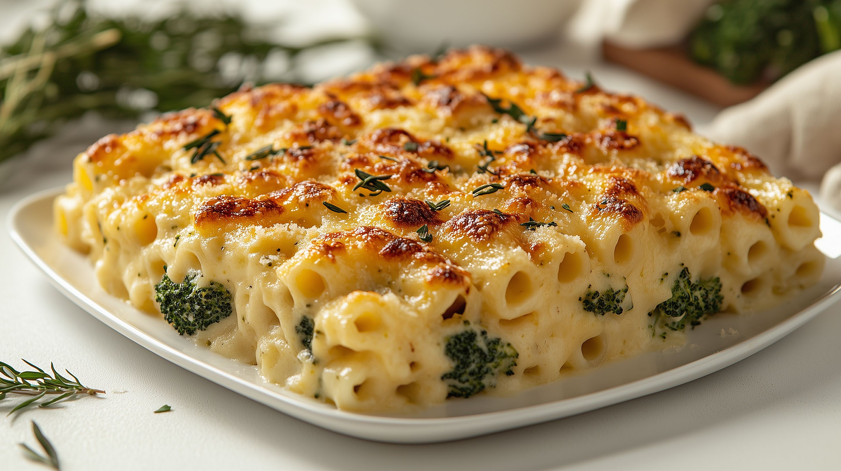 Das Bild zeigt einen leckeren Käseauflauf mit Brokkoli und frischen Kräutern. Der Auflauf ist goldbraun gegratiniert und sieht appetitlich und reichhaltig aus. Die Nudeln sind in eine cremige Käsesoße eingebettet und mit Brokkoli-Stücken durchsetzt. Obenauf befindet sich eine knusprige, goldgelbe Käsekruste, die dem Gericht eine schöne Optik verleiht. Das rustikale Gericht vermittelt ein Gefühl von Gemütlichkeit und Genuss. Es eignet sich hervorragend als Hauptspeise oder Beilage für ein Familienessen, ein Büffet oder ein Catering-Event. Dieses hochaufgelöste, kostenlose Stockfoto unter Creative-Commons-Lizenz kann für verschiedenste Anwendungen wie Blogs, Newsletter, Social-Media-Beiträge oder Werbematerialien genutzt werden.