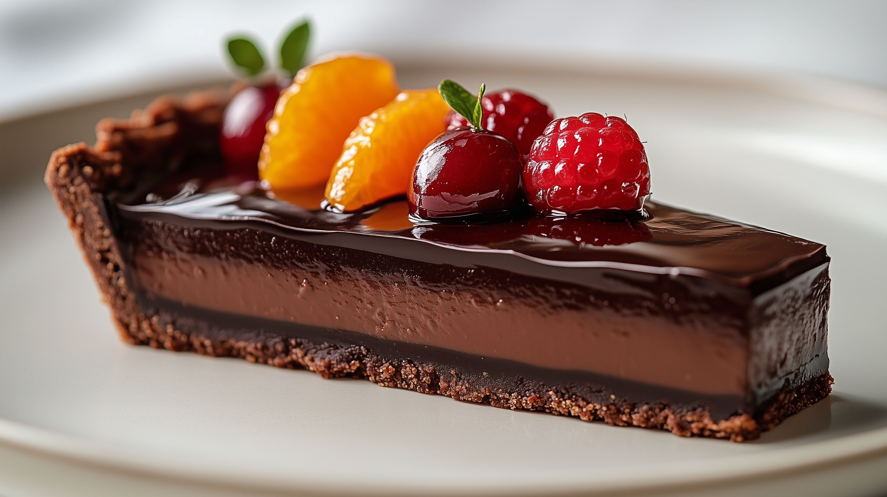 Das Bild zeigt eine üppige, dekorative Schokoladentorte, die mit frischen roten Beeren, Himbeeren, Kirschen und Orangenscheiben garniert ist. Der dunkelbraune, glänzende Schokoladenüberzug sorgt für einen edlen und sinnlichen Eindruck. Die Komposition ist ansprechend und ästhetisch, die Farben kontrastreich. Dieses hochwertige Stockfoto eignet sich perfekt für Beiträge in Lebensmittelblogs, Kochzeitschriften, Werbekampagnen für Cafés oder Konditoreien sowie für den Einsatz in sozialen Medien. Es ist in hoher Auflösung verfügbar und unter der Creative-Commons-Lizenz kostenfrei nutzbar.
