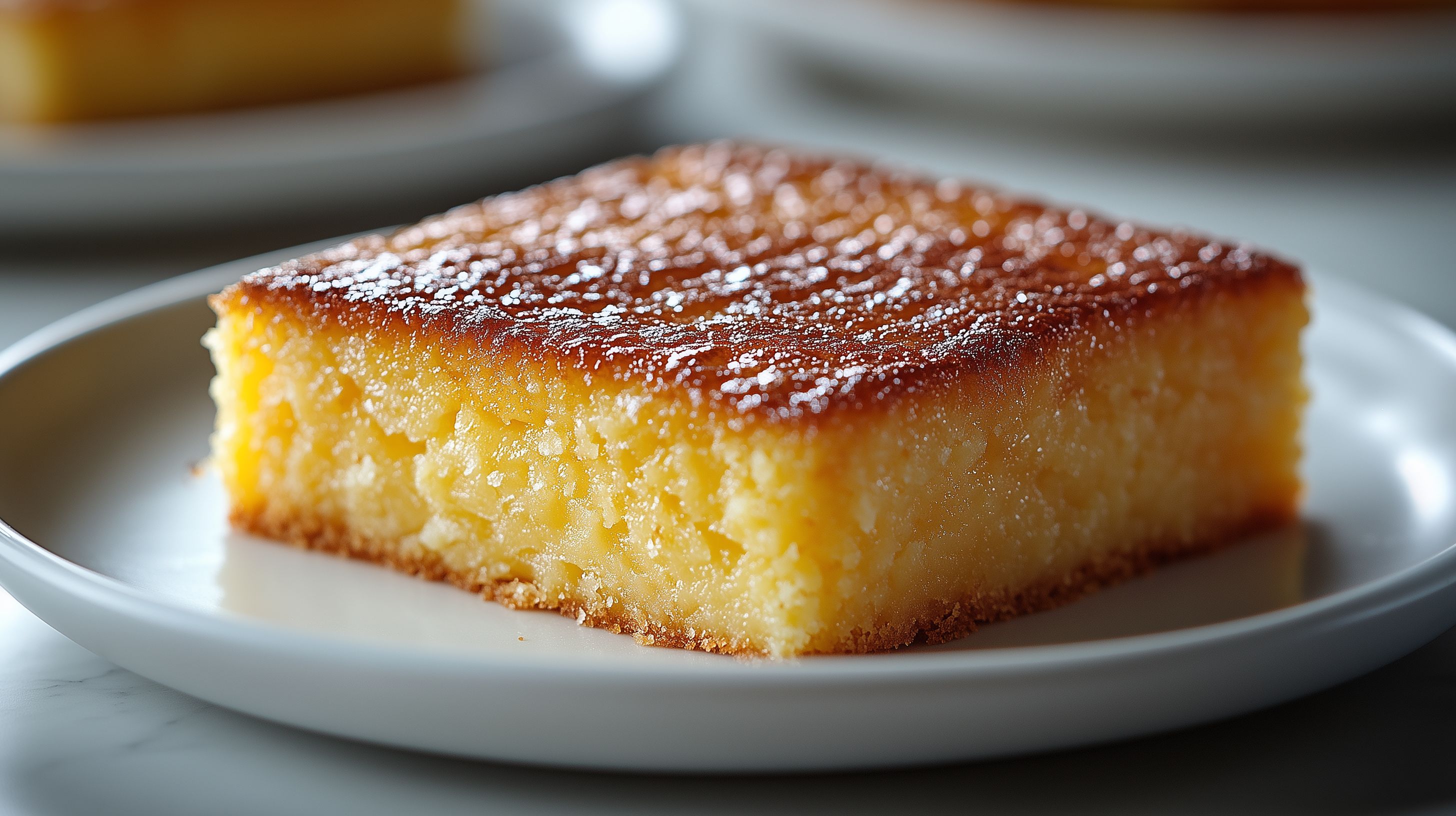 Das Bild zeigt ein goldbraunes Stück Maisbrot auf einem weißen Teller. Die Oberfläche des Brotes ist mit einer glänzenden Karamellglasur überzogen, die eine appetitliche Kruste bildet. Der Kontrast zwischen dem hellen Brot und der dunklen Glasur macht das Bild sehr ansprechend und lässt es sehr verlockend erscheinen. Das Foto wäre perfekt für die Verwendung in Lebensmittelblogs, Social-Media-Beiträgen oder Werbematerialien für Backwaren. Als hochauflösendes, kostenloses Stockfoto unter Creative-Commons-Lizenz eignet es sich hervorragend für den Einsatz in verschiedensten Projekten.