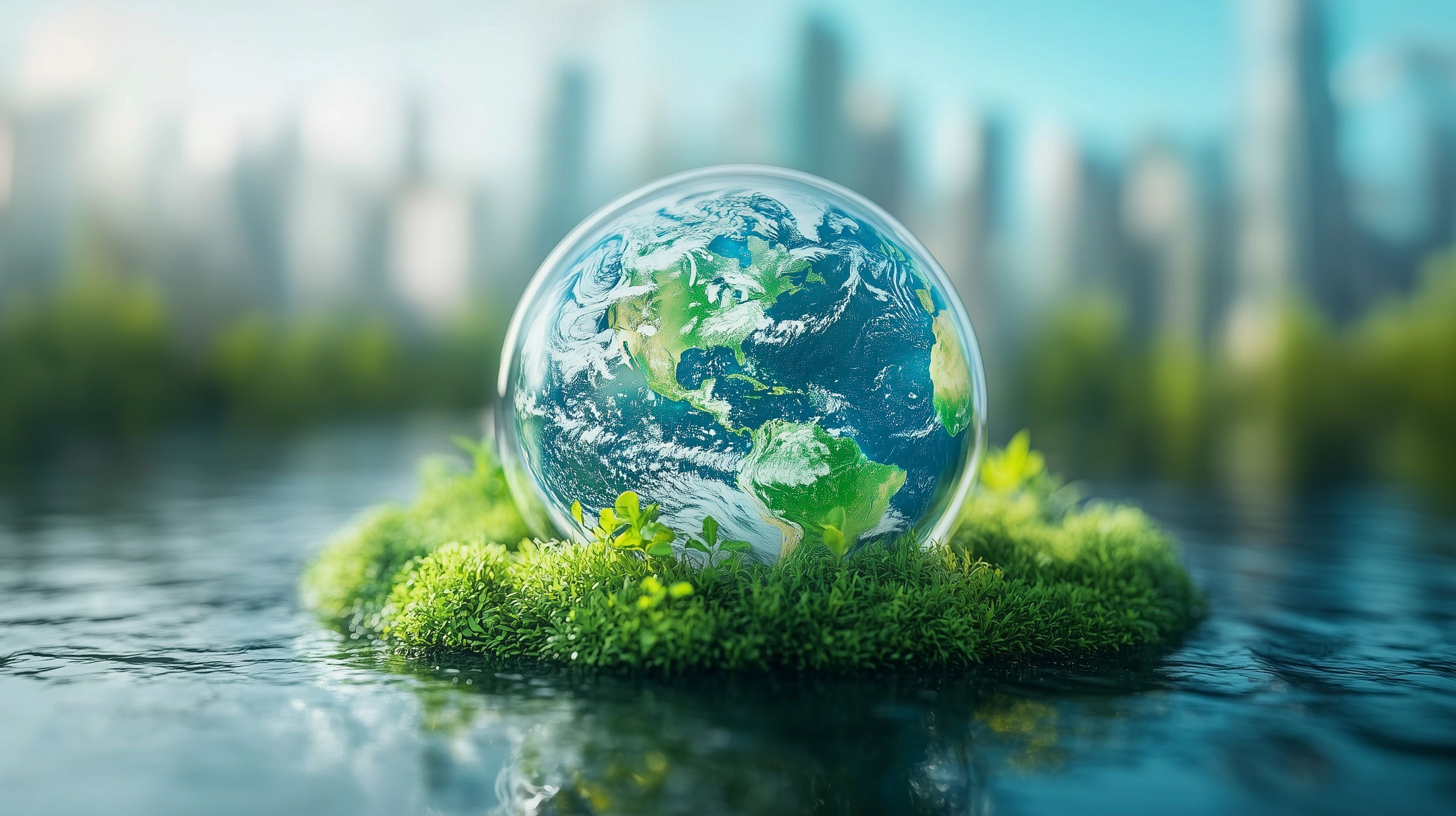 Das Bild zeigt eine Glasblase, in der sich die Erde befindet, umgeben von üppigem, grünem Moos. Im Hintergrund ist eine verschwommene Stadtsilhouette zu sehen. Dieses symbolträchtige Motiv vermittelt die Botschaft von Umweltschutz, Nachhaltigkeit und der Verantwortung, die wir für unseren Planeten haben. Das Foto eignet sich hervorragend für Blog-Beiträge, Newsletter oder Social-Media-Posts zu Themen wie Ökologie, Klimaschutz und unser Verhältnis zur Natur. Dieses hochauflösende, kostenlose Stockfoto steht unter einer Creative-Commons-Lizenz zur Verfügung.