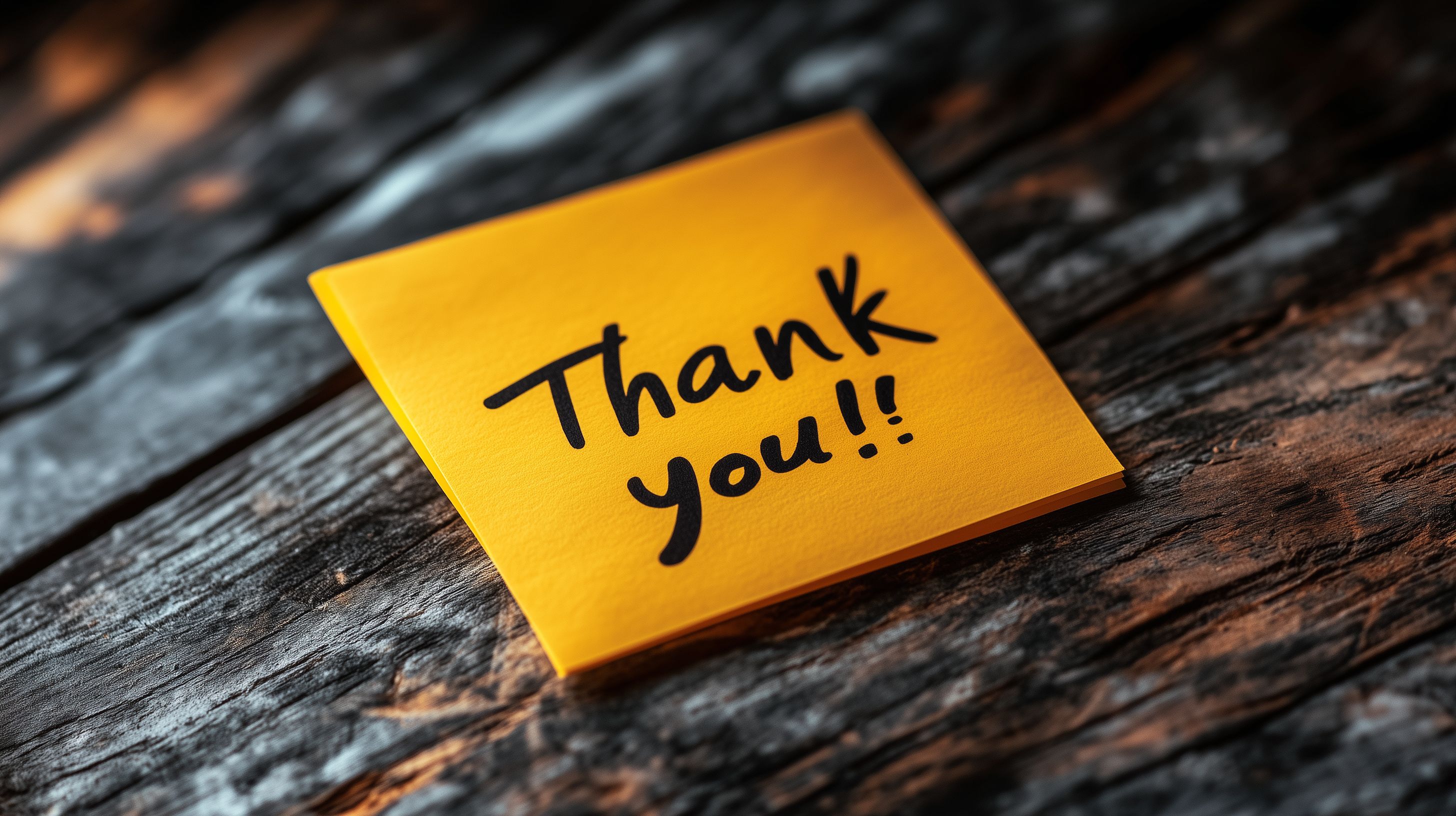 Dieses Foto zeigt einen gelben Haftzettel mit der handgeschriebenen Aufschrift 'Thank you!!' auf einer rustikalen Holzoberfläche. Das Bild vermittelt eine Stimmung der Dankbarkeit und Wertschätzung. Es eignet sich hervorragend für den Einsatz in Newslettern, Blogbeiträgen oder Werbeanzeigen, die positive Emotionen und Motivation vermitteln wollen. Als kostenloses Stockfoto in hoher Auflösung unter Creative-Commons-Lizenz kann es frei verwendet werden.