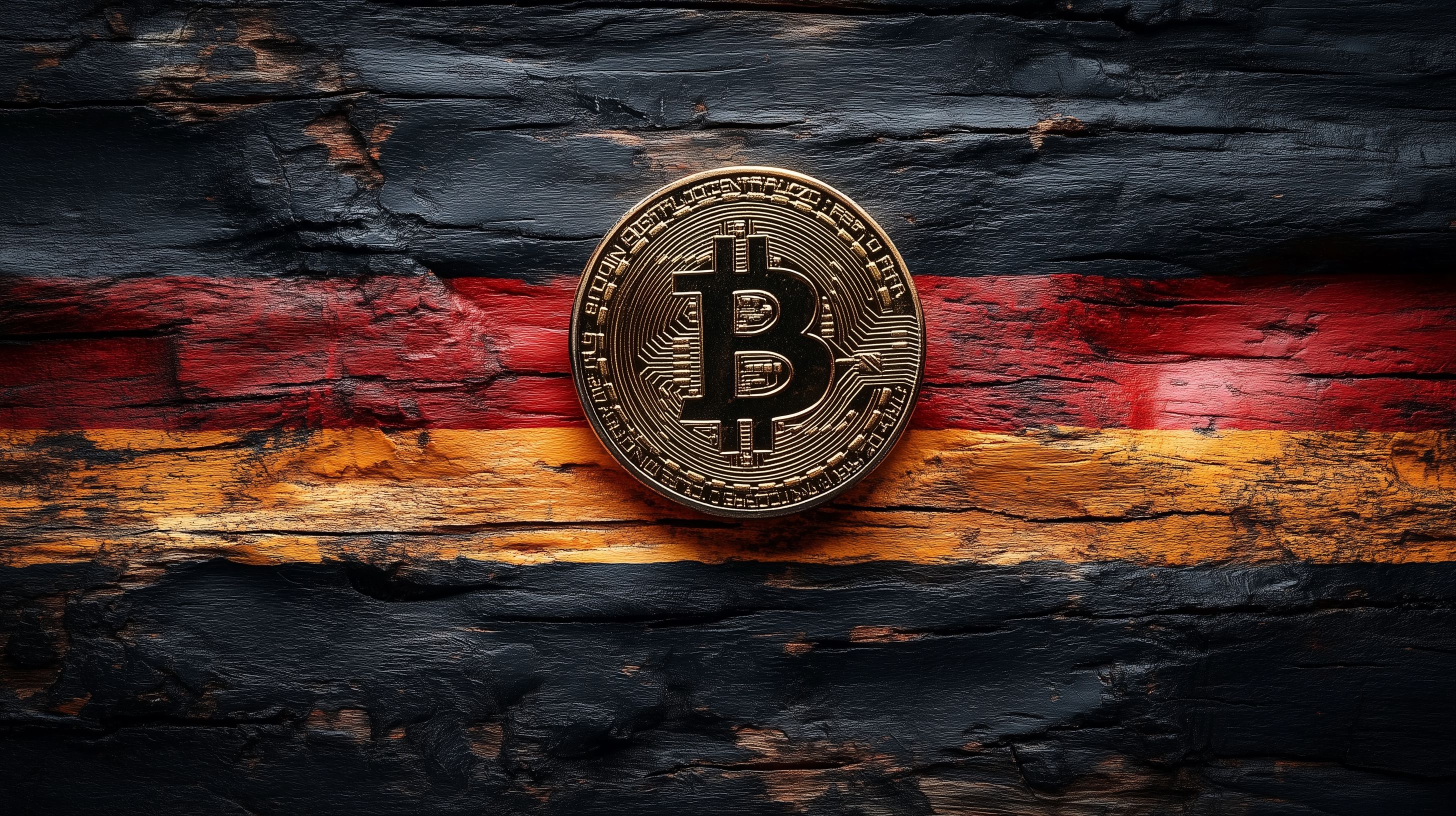 Dieses Bild zeigt eine goldene Bitcoin-Münze, die vor einer Deutschlandfahne auf einer Holz-Hintergrundtextur platziert ist. Die Szene vermittelt eine Verbindung zwischen der Kryptowährung Bitcoin und dem deutschen Patriotismus. Die dunkle, grunge-artige Atmosphäre unterstreicht die innovative und technologische Natur von Blockchain und digitalen Währungen. Das Bild eignet sich hervorragend für den Einsatz in Artikeln, Blogbeiträgen oder Werbekampagnen rund um das Thema Kryptowährungen, Finanzen und Investitionen. Als kostenloses Hochauflösungsfoto unter Creative-Commons-Lizenz ist es vielfältig einsetzbar.