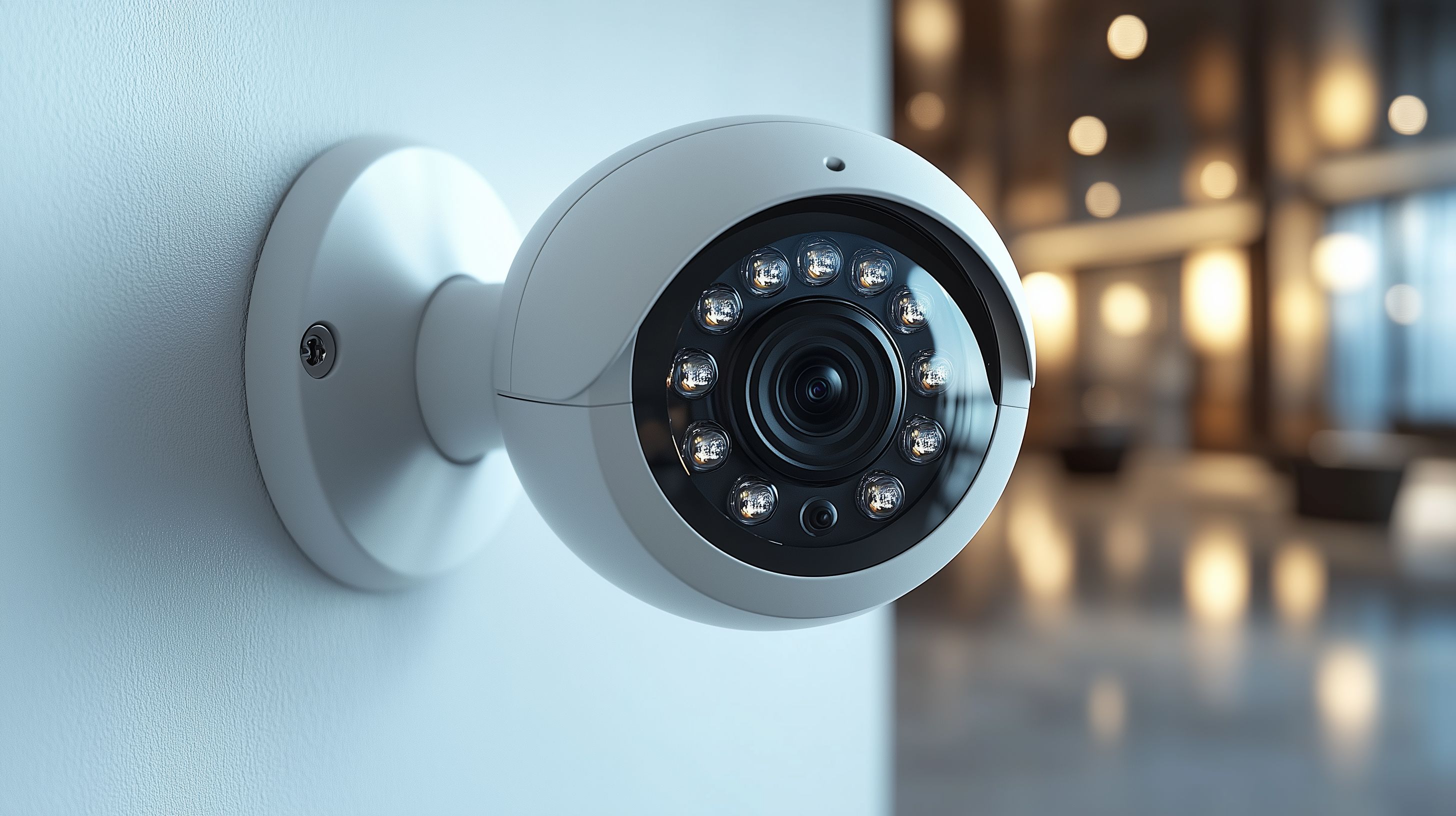Das Bild zeigt eine moderne, kompakte Überwachungskamera, die an einer weißen Wand installiert ist. Die Kamera hat einen schwarzen Gehäusekörper mit mehreren Infrarot-LEDs, die eine Nachtsichtfähigkeit ermöglichen. Sie ist für den Einsatz in Büros, Geschäften oder anderen Gebäuden konzipiert und dient der Sicherheit und Überwachung. Das Foto eignet sich gut für den Einsatz in Blogbeiträgen, Newslettern oder Social-Media-Posts zum Thema Sicherheitstechnik, Smart Home oder Hausautomatisierung. Als hochwertiges, kostenloses Stockfoto unter Creative-Commons-Lizenz kann es frei für verschiedenste Zwecke genutzt werden.