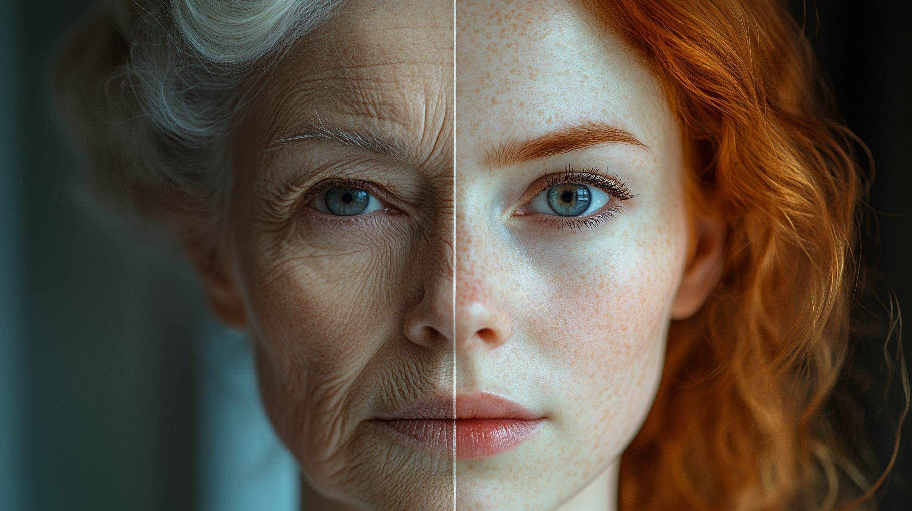 Dieses faszinierende Foto zeigt eindrucksvoll den Kontrast zwischen Jugend und Alter. Die Gegenüberstellung der Gesichter einer älteren und einer jüngeren Frau offenbart den natürlichen Alterungsprozess der Haut, die Falten und die Lebenserfahrung, die sich in den Augen widerspiegelt. Gleichzeitig leuchten die blauen Augen und das intensive Rot der Haare der jüngeren Frau. Das Bild bietet vielfältige Nutzungsmöglichkeiten, beispielsweise für Blogs, Newsletter, Social-Media-Posts oder Werbematerial. Als hochwertiges, kostenloses Stockfoto unter Creative-Commons-Lizenz eignet es sich hervorragend, um Texte, Designs oder Layouts zu ergänzen und Ihren Inhalten eine einzigartige Note zu verleihen.