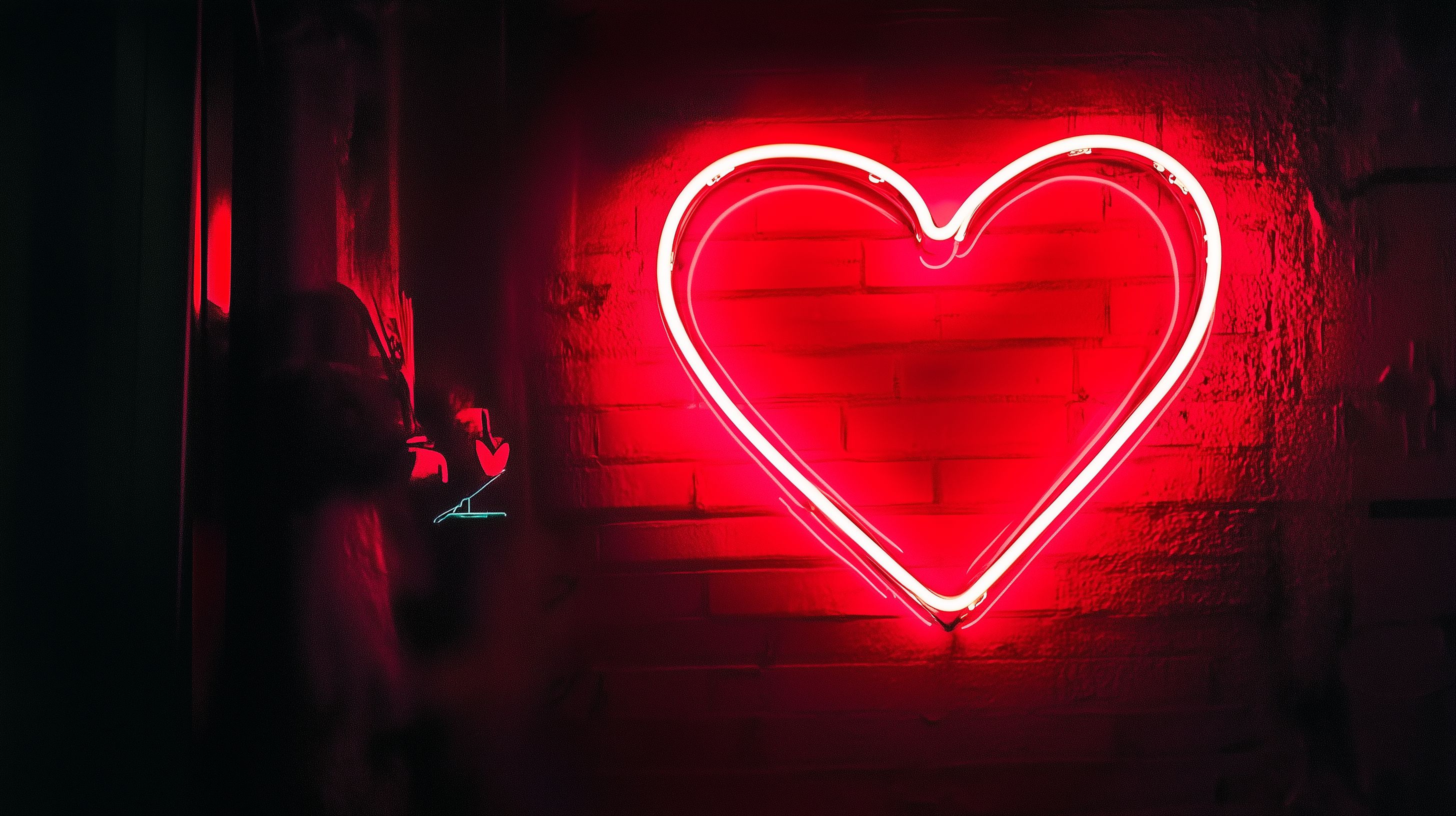 Rotes Neonherz an Ziegelwand - Stimmungsvolle Liebesfotografie von Marco Verch unter Creative Commons 2.0