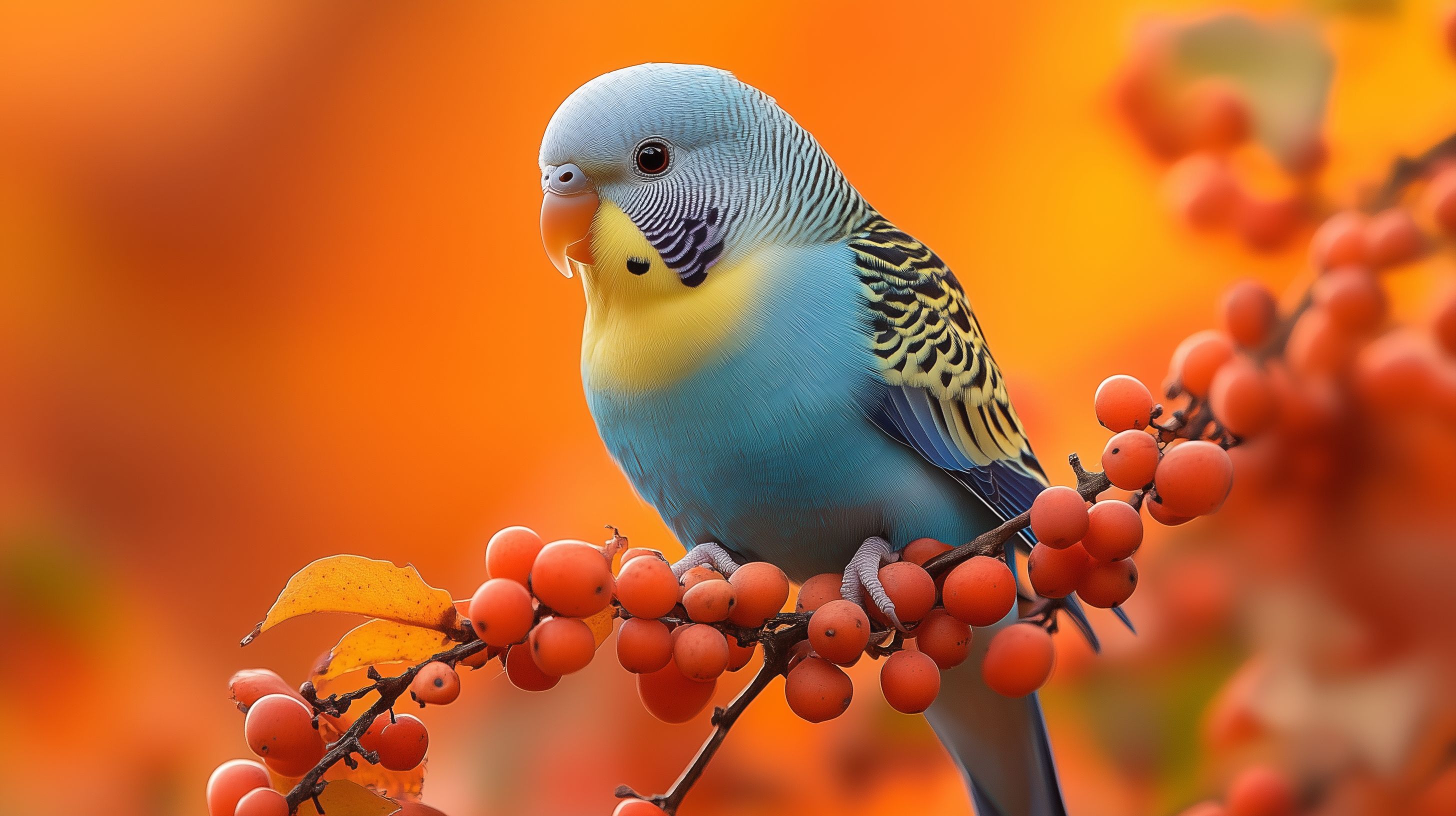 Dieses atemberaubende Foto zeigt einen farbenprächtig gefiederten Wellensittich, der inmitten von leuchtend roten Beeren und herbstlich gefärbten Blättern sitzt. Der Vogel ist in einer natürlichen Umgebung mit warmem, orangefarbenem Hintergrund abgelichtet, was eine lebendige und stimmungsvolle Szenerie schafft. Dieses hochwertige Stockfoto eignet sich hervorragend für den Einsatz in Blogbeiträgen, Newslettern, Social-Media-Posts oder Werbematerialien, die eine natürliche, exotische Ästhetik vermitteln möchten. Das Bild ist in hoher Auflösung verfügbar und unter einer Creative-Commons-Lizenz nutzbar.