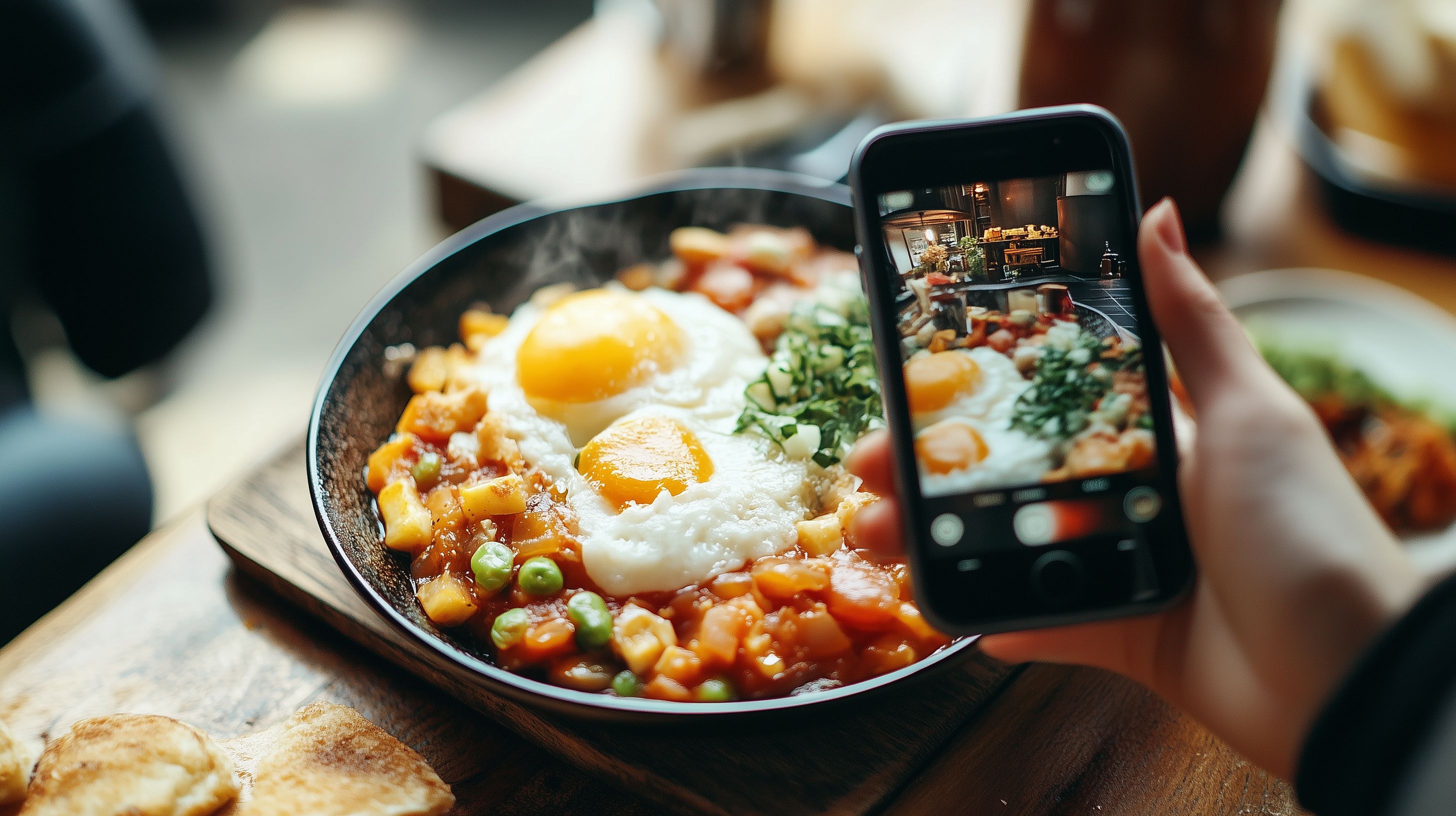 Dieses Foto zeigt ein köstliches Frühstücksgericht in einer rustikalen Holzschale. Im Mittelpunkt stehen frisch zubereitete Spiegeleier, umgeben von einem bunten Tomatensalat mit grünem Gemüse. Die Anordnung der Zutaten sowie die Ausleuchtung durch natürliches Licht verleihen dem Bild eine appetitanregende Optik. Das Foto eignet sich perfekt als kostenloses Stockfoto für die Verwendung in Blogs, Newslettern oder auf Social Media-Kanälen, da es in hoher Auflösung und unter einer Creative-Commons-Lizenz verfügbar ist.