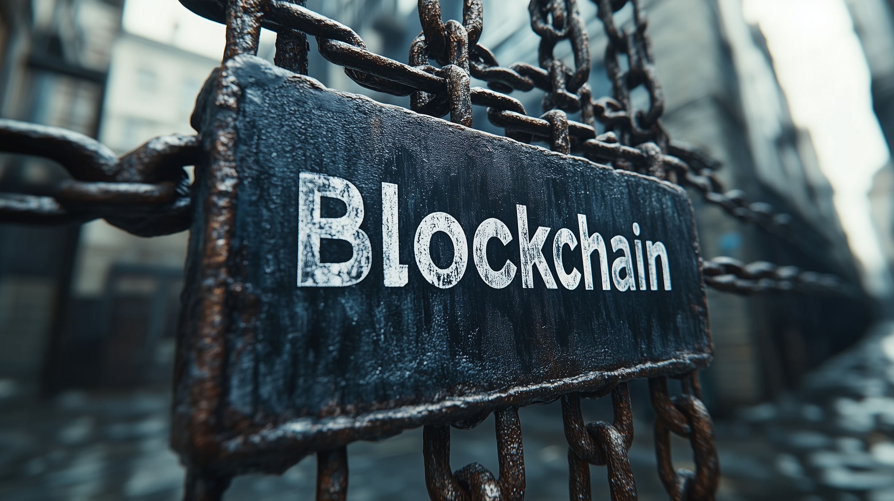 Dieses eindrucksvolle Foto zeigt einen verwitterten Blockchain-Schriftzug, der an einer rostigen Metalltafel und Kette befestigt ist. Die dunkle, industrielle Ästhetik vermittelt die Robustheit und Beständigkeit dieser innovativen Technologie. Das Bild eignet sich hervorragend als Hintergrundbild oder für den Einsatz in Blog-Beiträgen, Newslettern und Social-Media-Kanälen rund um Themen wie Digitalisierung, Finanztechnologie, Kryptowährungen und Datensicherheit. Dieses hochauflösende Stockfoto steht unter einer Creative-Commons-Lizenz kostenlos zur Verfügung.