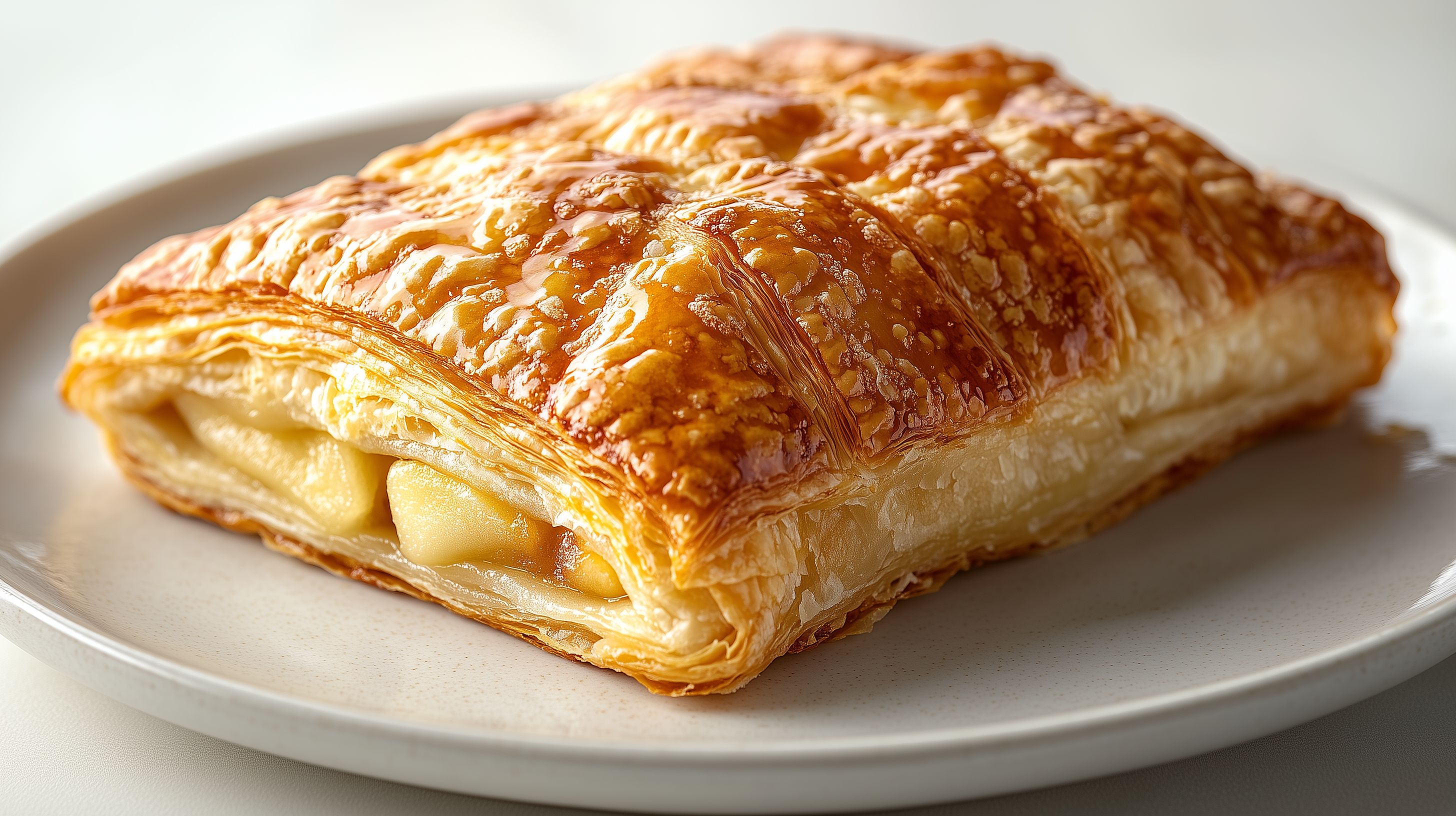 Das Bild zeigt ein frisch gebackenes, knuspriges Apfeltaschengebäck, das auf einem sauberen, weißen Teller präsentiert wird. Der goldbraune, blätterige Teig umschließt eine leckere Apfelfüllung, die verführerisch durch die Oberfläche schimmert. Die Komposition betont die appetitliche Optik des Gerichts und lädt dazu ein, dieses köstliche Backwerk direkt zu genießen. Dieses hochauflösende Foto eignet sich hervorragend für die Verwendung in Koch-Blogs, Online-Shops oder Social-Media-Beiträgen rund um Backwaren, Desserts und Snacks. Als kostenloses Stockfoto unter Creative-Commons-Lizenz kann es vielseitig eingesetzt werden.
