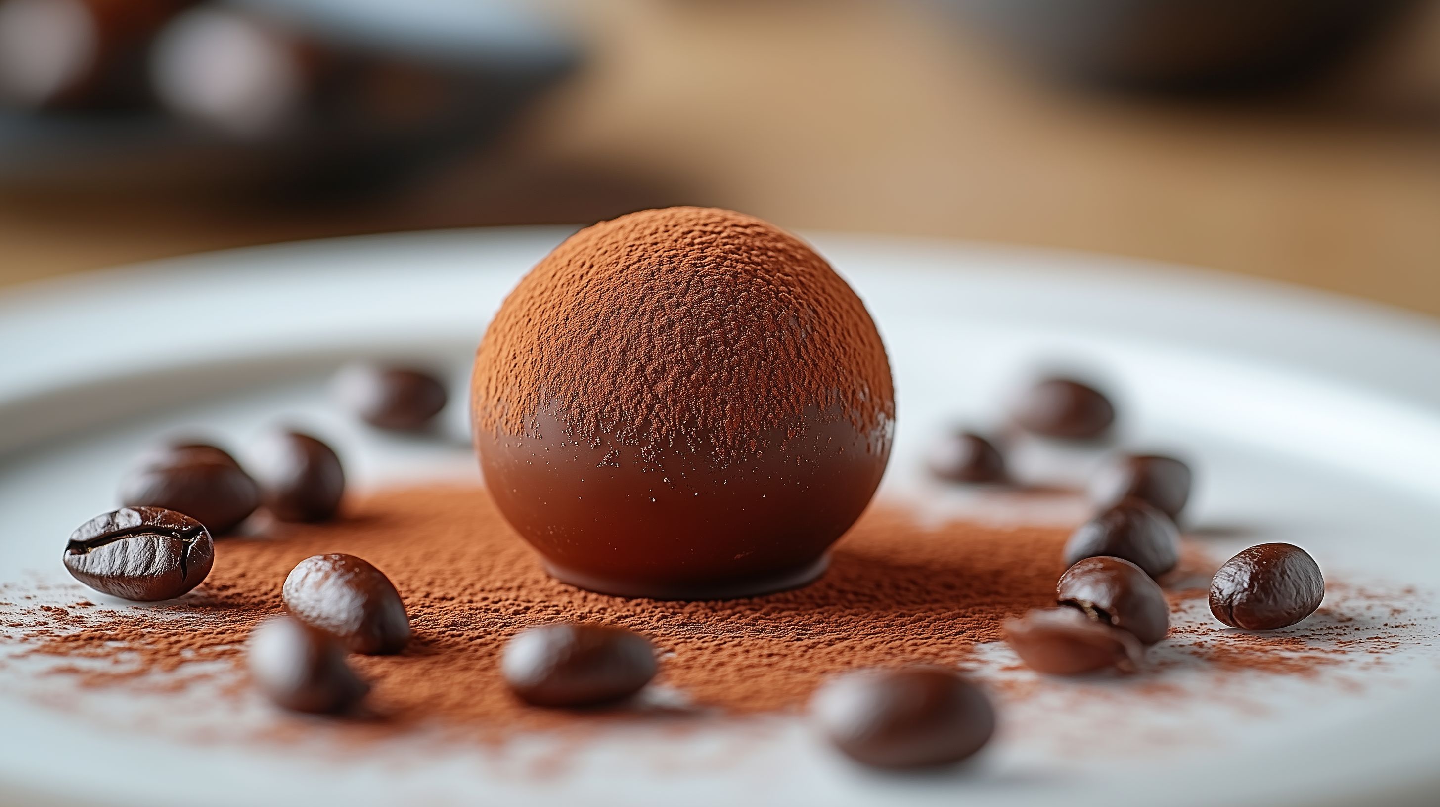 Dieses Foto zeigt eine runde, delikate Mousse-Kugel, die mit feinem Kakaopulver überzogen ist. Umgeben ist sie von gerösteten Kaffeebohnen und Haselnüssen, die das Bild stimmungsvoll abrunden. Die Perspektive ist nah und fokussiert, was den Blick auf die feine Textur und den Detailreichtum lenkt. Dieses Stockfoto eignet sich hervorragend für die Verwendung in Blogs, Newslettern, Social-Media-Beiträgen oder für die Werbung von Produkten rund um Süßspeisen, Konfekt und Kaffeespezialitäten. Es ist in hoher Auflösung verfügbar und unter der Creative-Commons-Lizenz kostenlos nutzbar.