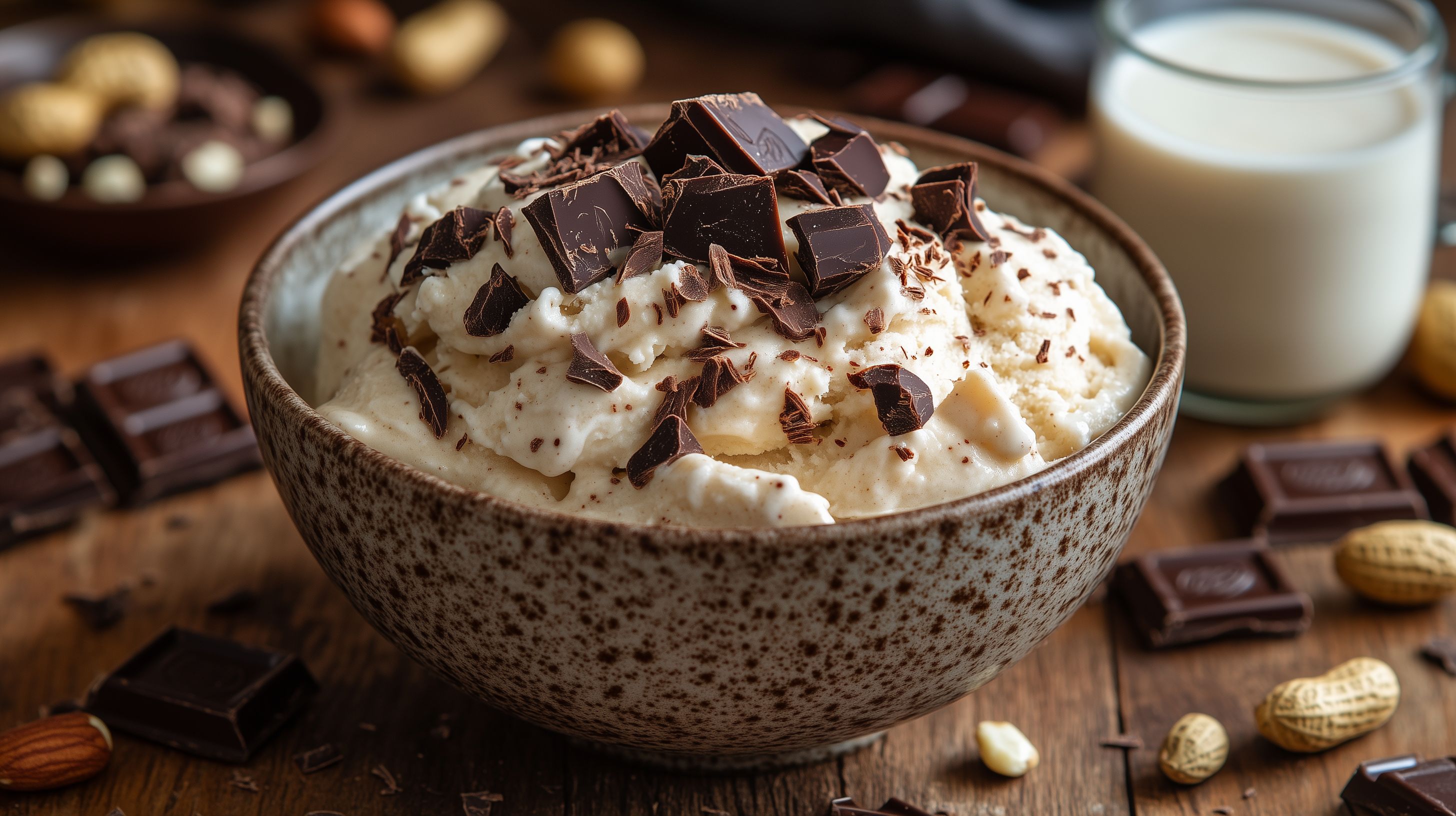 Das Foto zeigt eine Schüssel mit leckerem Bananeneis, überzogen mit dunkler Schokolade und gerösteten Nüssen. Die Nahaufnahme lässt die sämige Konsistenz und die appetitlichen Kontraste zwischen dem hellen Eis, der dunklen Schokolade und den knusprigen Nüssen erkennen. Das Dessert wird umrahmt von einer rustikalen, hölzernen Umgebung mit Kaffeetasse, die eine gemütliche, kulinarische Stimmung vermittelt. Dieses hochwertige Stockfoto in hoher Auflösung eignet sich ideal für Rezeptblogbeiträge, Social-Media-Posts oder Werbeanzeigen für Eiscremes, Schokolade oder Desserts. Es steht unter einer Creative-Commons-Lizenz kostenlos zur Verfügung.