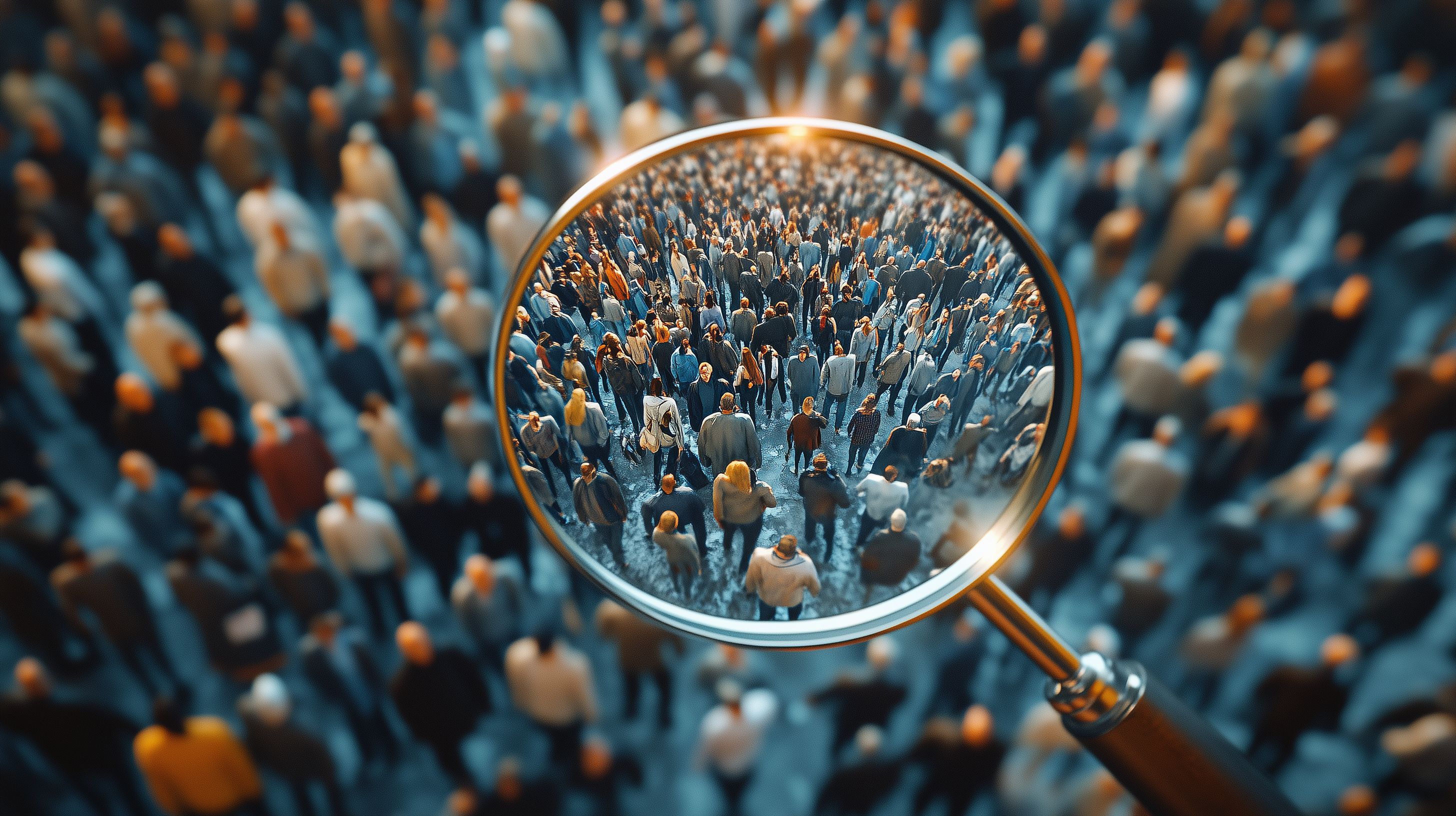 Das Foto zeigt eine dicht gedrängte Menschenmenge, die durch eine Lupe vergrößert wurde. Der Effekt erzeugt eine abstrakte, beinahe künstlerische Perspektive auf die Vielzahl an Menschen, die ihre Individualität und Einzigartigkeit verlieren und zu einer anonymen Masse verschmelzen. Das Bild vermittelt Gedanken zur Überbevölkerung, Anonymität in Großstädten und der Bedeutung des Einzelnen im Kollektiv. Es eignet sich hervorragend als kostenloses Stockfoto für Blogs, Newsletter, Social-Media-Beiträge und Werbematerial in hoher Auflösung und unter Creative-Commons-Lizenz.
