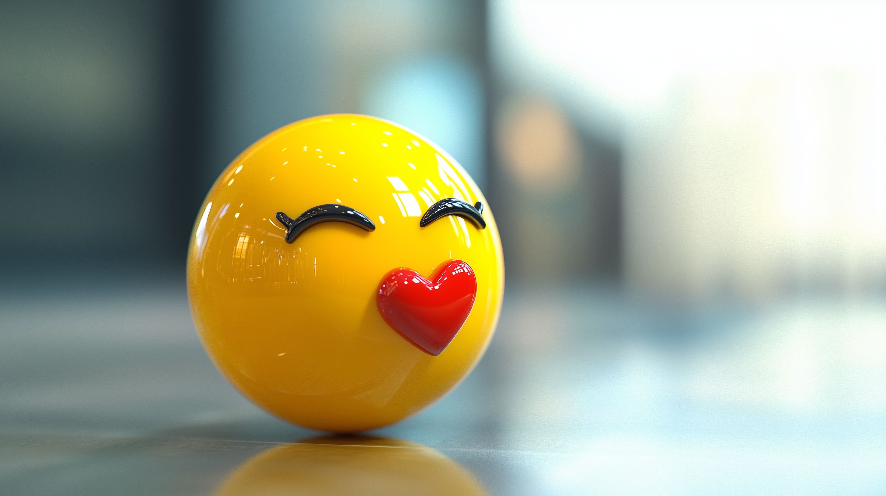 Dieses knuffige 3D-Emoji-Foto zeigt eine glänzende, gelbe Kugel mit einem niedlichen Kussmund und geschlossenen Augen. Das rote Herz auf der Kugel verleiht dem Bild einen romantischen Touch. Mit seiner verspielten Ausstrahlung eignet sich dieses hochauflösende Stockfoto hervorragend für den Einsatz in Sozialen Medien, Werbeanzeigen, Blogs und Newslettern - etwa zu Anlässen wie Valentinstag oder als Liebesgruß. Das Foto steht unter einer kostenlosen Creative-Commons-Lizenz zur Verfügung.