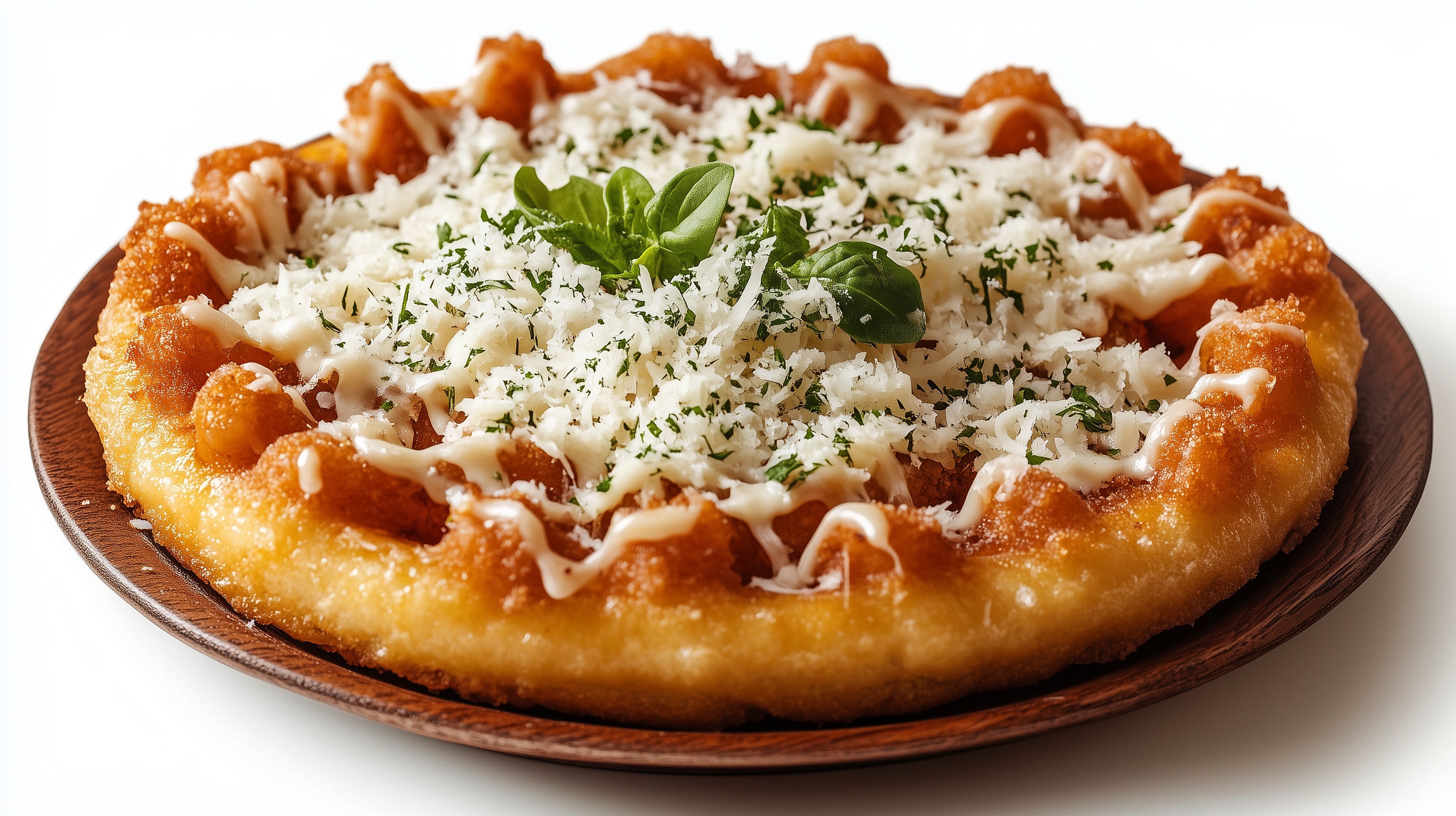 Das Bild zeigt einen frisch zubereiteten ungarischen Langos, einer traditionellen Flachteigspeise, die mit einer Knoblauchsauce und geriebenem Käse serviert wird. Der Langos ist in der Mitte angeordnet und nimmt den Großteil des Bildes ein. Die Kruste des Brotes ist leicht gebräunt und knusprig, während der Käse und die Knoblauchsauce eine delikate Ergänzung bilden. Das Foto ist in einem rustikalen, warmen Farbton gehalten und verleiht dem Gericht eine appetitliche Ausstrahlung. Dieses kostenlose Stockfoto in hoher Auflösung eignet sich hervorragend für die Verwendung in Blogs, Newslettern, Social-Media-Beiträgen oder Werbematerialien rund um Gastronomie, Rezepte und kulinarische Themen. Es steht unter einer Creative-Commons-Lizenz zur Verfügung.
