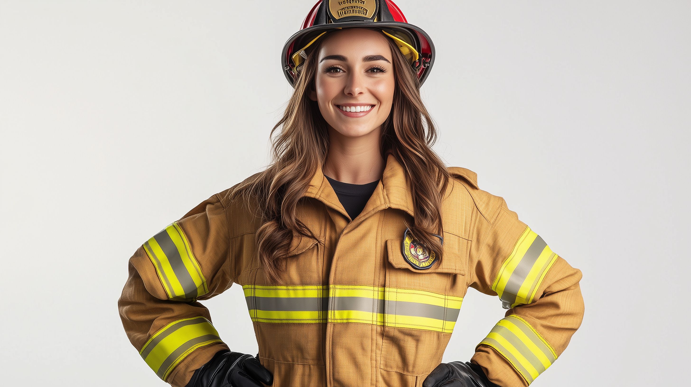 Dieses Stockfoto zeigt eine freundlich lächelnde Feuerwehrfrau in voller Einsatzuniform. Sie trägt einen robusten, gelben Schutzanzug mit Reflektorstreifen und einen Feuerwehrhelm, der ihre Identität nicht preisgibt. Der Fokus liegt auf ihrem positiven, vertrauenserweckenden Gesichtsausdruck, der die Kompetenz und Hilfsbereitschaft der Einsatzkraft betont. Dieses Bild könnte ideal für Blogbeiträge, Werbekampagnen oder Soziale Medien zum Thema Rettungsdienste, Sicherheit und weibliche Führungskräfte verwendet werden. Als kostenloses Hochauflösungsfoto unter Creative-Commons-Lizenz bietet es vielseitige Einsatzmöglichkeiten.