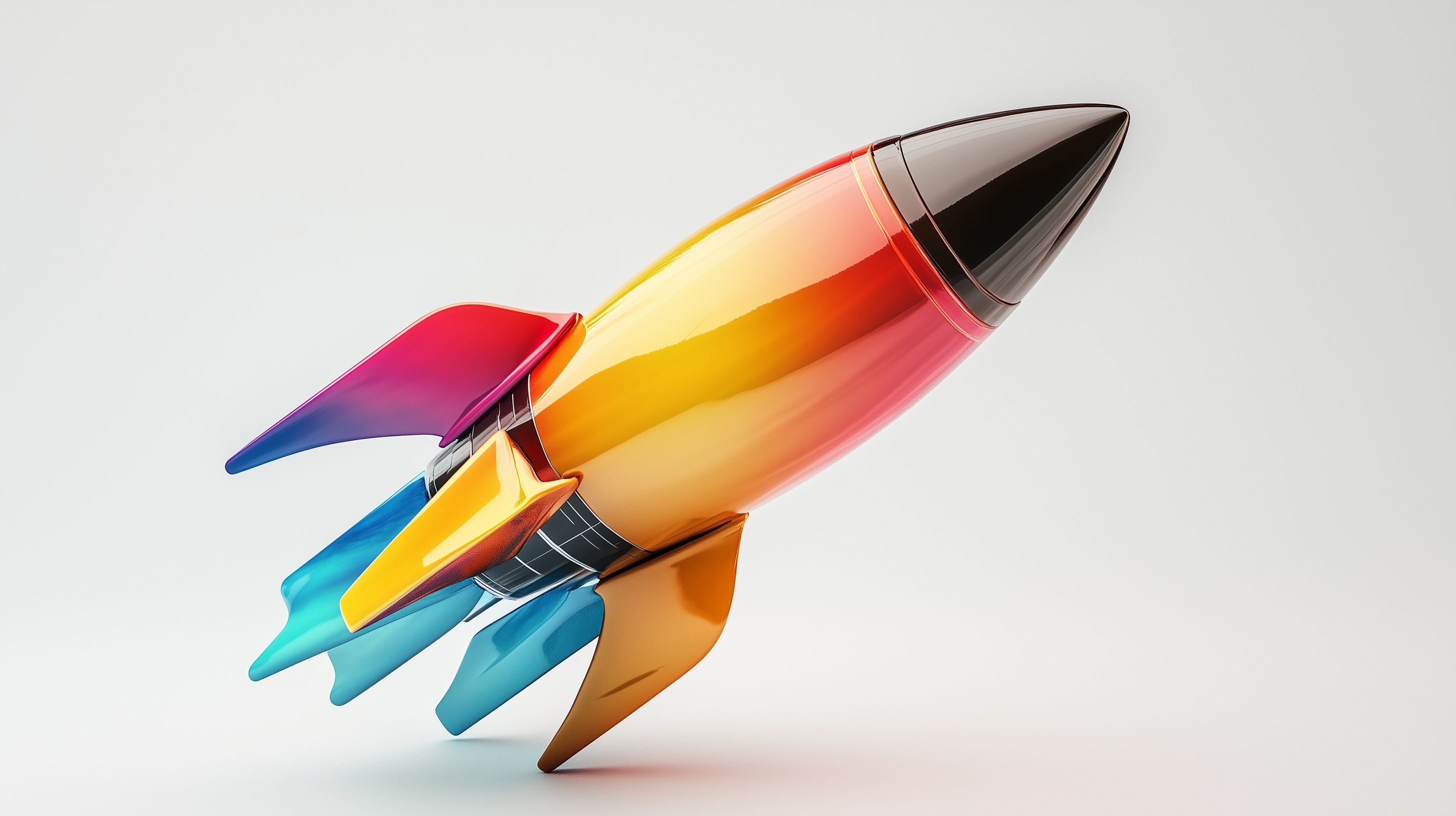 Dieses farbenfrohe Stockfoto zeigt eine dreidimensionale Rakete vor einem weißen Hintergrund. Die Rakete ist in einem Ombré-Farbverlauf von Rot über Orange und Gelb bis hin zu Blau und Grün gestaltet, was einen dynamischen und modernen Eindruck vermittelt. Die Komposition ist minimalistisch und lässt den Fokus ganz auf das Objekt selbst fallen. Dieses Bild eignet sich hervorragend für den Einsatz in Werbekampagnen, Blogbeiträgen, Social-Media-Posts oder Newslettern rund um Themen wie Raumfahrt, Technik, Innovation oder Kreativität. Es ist in hoher Auflösung verfügbar und steht unter einer Creative-Commons-Lizenz zur freien Nutzung bereit.
