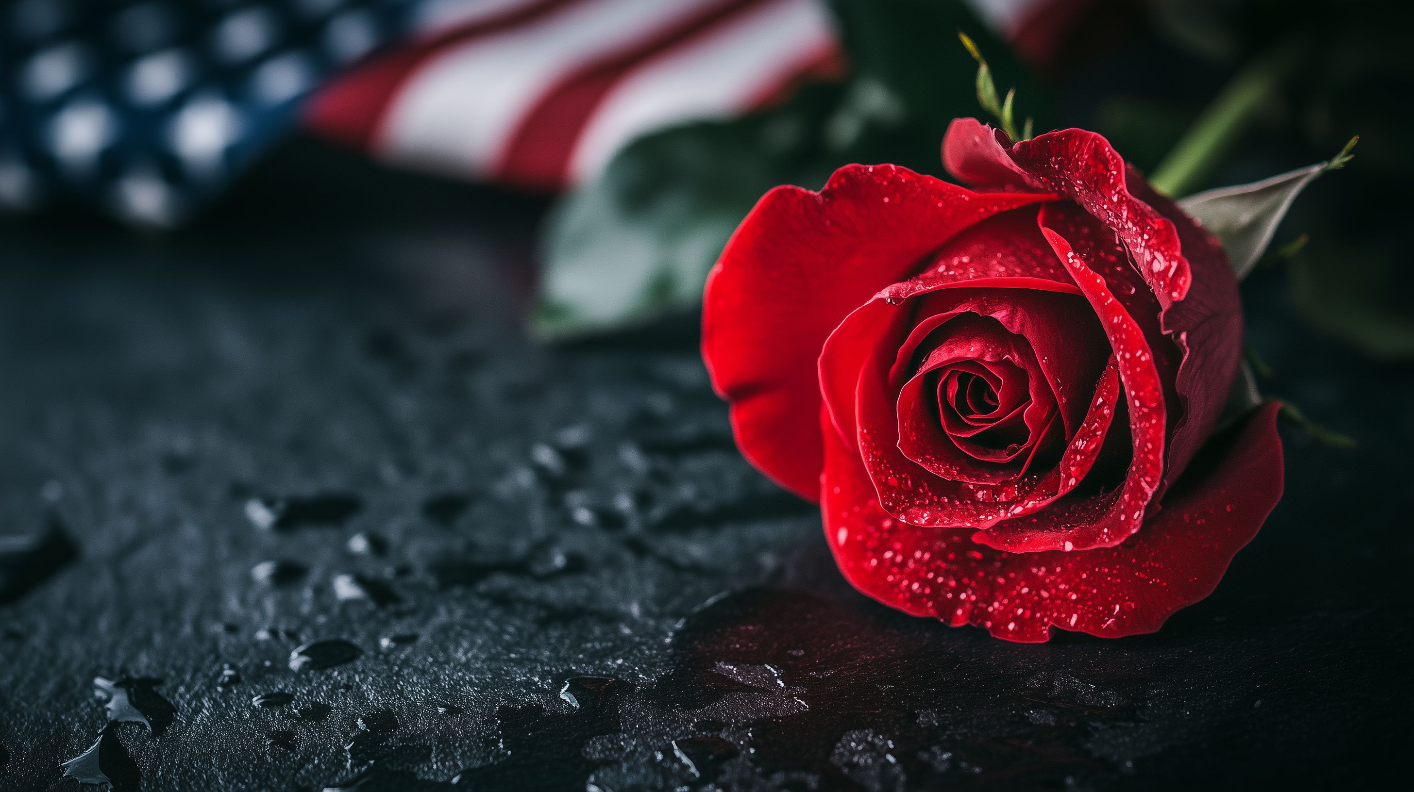 Diese Aufnahme zeigt eine wunderschöne rote Rose, die vor einer amerikanischen Flagge liegt. Die Blüte ist von Regentropfen bedeckt, was ihr einen besonders glanzvollen und frischen Ausdruck verleiht. Die Kombination aus der nationalen Symbolik der Flagge und der natürlichen Schönheit der Rose schafft ein stimmungsvolles Bild, das Patriotismus, Ehrung und Erinnerung zum Ausdruck bringt. Dieses kostenfreie Stockfoto in hoher Auflösung eignet sich hervorragend für Beiträge in Blogs, Newsletters oder sozialen Medien rund um Themen wie Gedenktage, nationale Feierlichkeiten oder Tribute an Gefallene. Es steht unter einer Creative-Commons-Lizenz zur Verfügung.