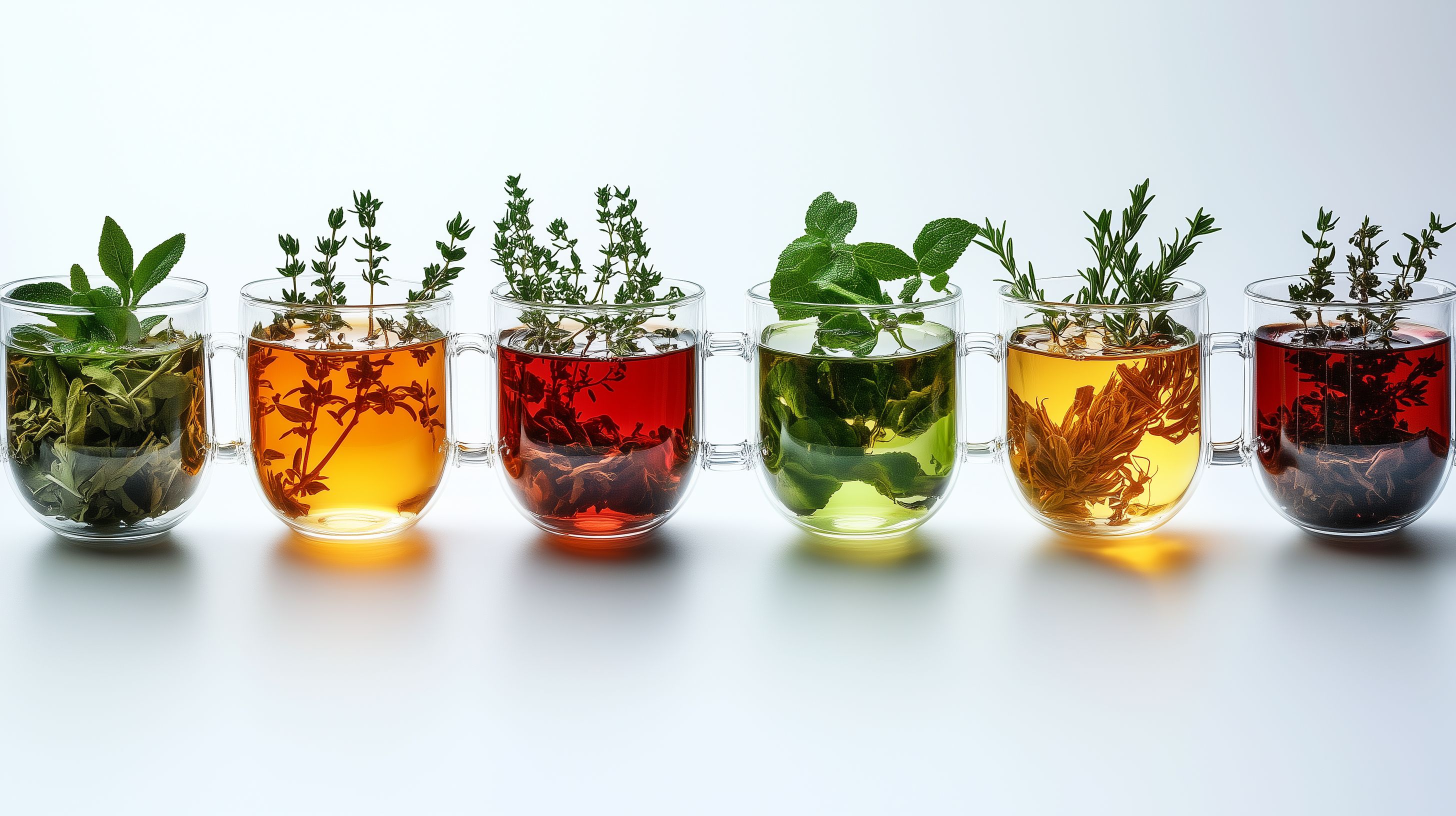 Dieses faszinierende Foto zeigt eine bunte Auswahl an verschiedenen Kräutertees in Gläsern. Die Gläser sind mit frischen Kräutern wie Minze, Rosmarin, Thymian und Lavendel dekoriert, die in den vielfältigen Teeaufgüssen schwimmen. Die unterschiedlichen Farben der Tees, von Rot über Orange bis Grün, verleihen der Komposition eine lebendige, einladende Optik. Diese Aufnahme eignet sich hervorragend für den Einsatz in Blogs, Newslettern oder Social-Media-Beiträgen rund um das Thema Tee, Gesundheit und Wellness. Als kostenloses, hochauflösendes Stockfoto unter der Creative-Commons-Lizenz ist es besonders attraktiv für eine Vielzahl kreativer Projekte.