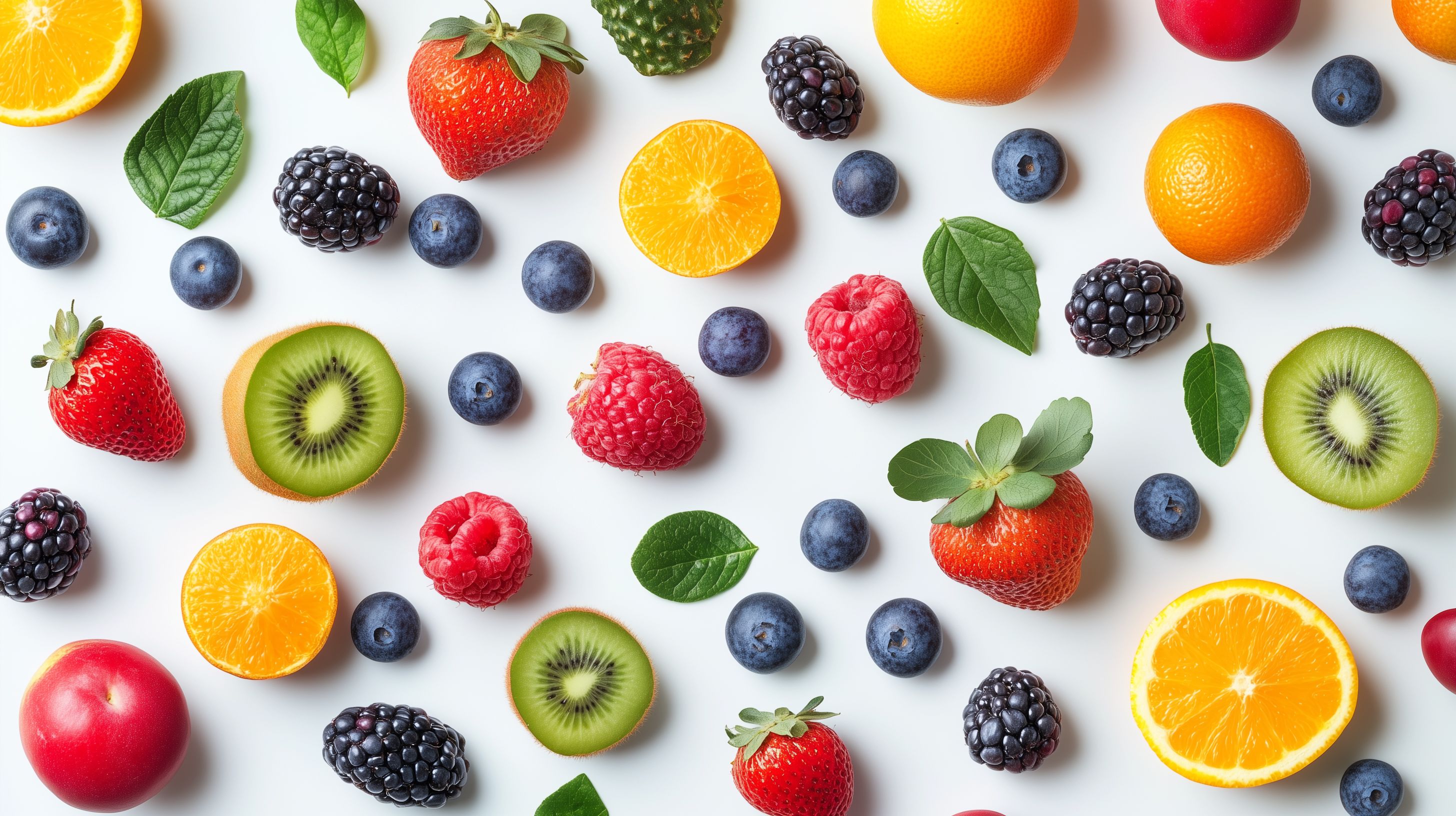 Dieses farbenfrohe Stockfoto zeigt eine harmonische Anordnung verschiedener Früchte auf weißem Hintergrund. Zu sehen sind Erdbeeren, Blaubeeren, Himbeeren, Brombeeren, Orangen, Kiwis und andere Zitrusfrüchte sowie Beeren. Die Früchte sind in einer natürlichen, appetitanregenden Komposition präsentiert und eignen sich hervorragend für den Einsatz in Rezeptbüchern, Blogbeiträgen, Werbekampagnen und Social-Media-Posts rund um gesunde Ernährung, Veggie-Themen oder erfrischende Sommergerichte. Als hochwertiges, kostenloses Stockfoto unter einer Creative-Commons-Lizenz ist es für vielfältige Zwecke frei nutzbar.