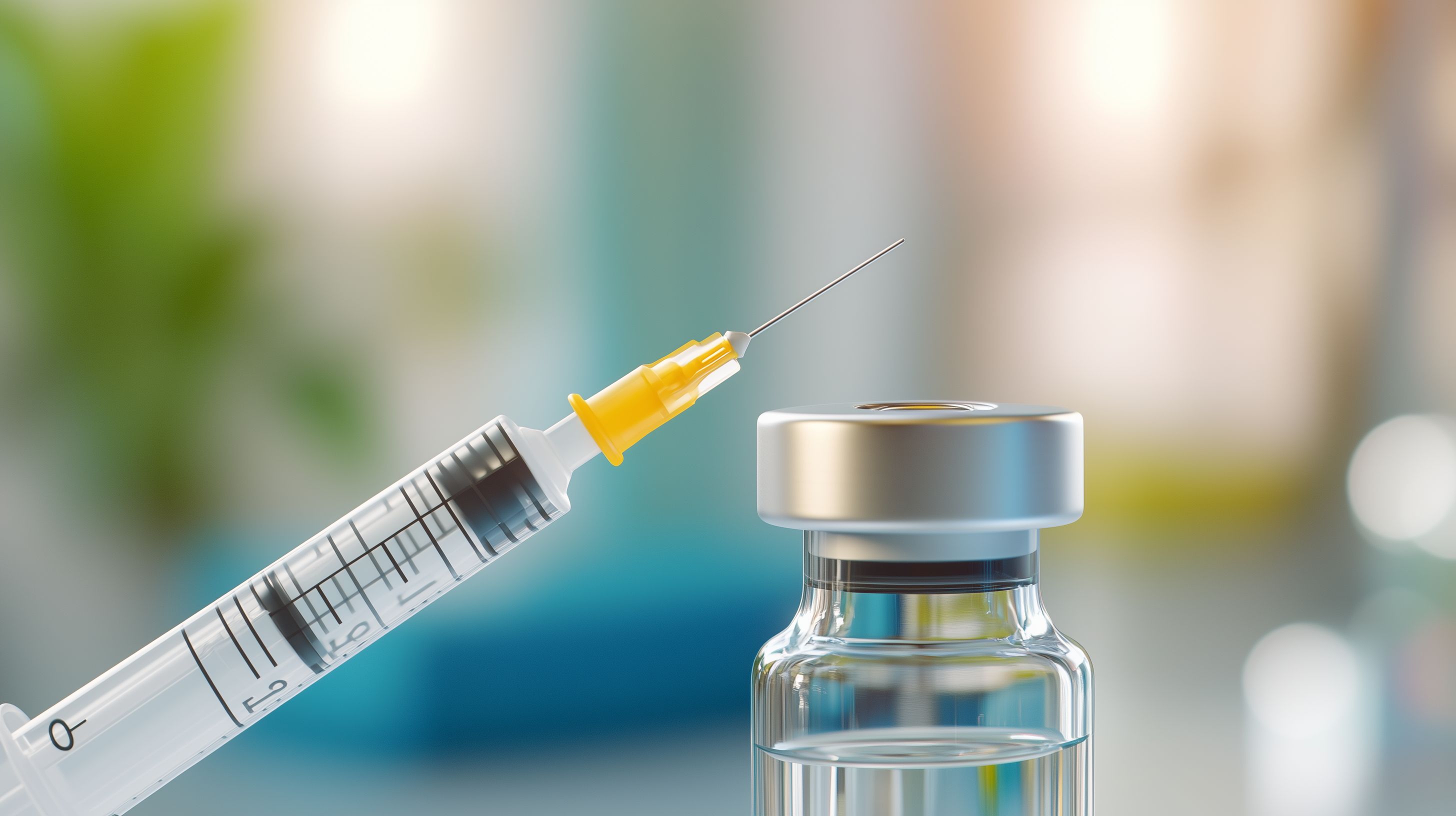 Dieses Foto zeigt eine Spritze mit gelbem Kolben, die vor einer Glasflasche mit einer Flüssigkeit steht. Die Komposition mit der Nahaufnahme und dem unscharfen, grünlichen Hintergrund legt den Fokus auf das medizinische Gerät und den Impfstoff. Dieses Stockfoto kann für Blogbeiträge, Newslettergestaltung, Social-Media-Posts oder Werbekampagnen in Bezug auf Medizin, Gesundheitsvorsorge, Impfungen oder Pharmazie verwendet werden. Es ist in hoher Auflösung und unter einer Creative-Commons-Lizenz verfügbar, sodass es kostenfrei für verschiedene Zwecke genutzt werden kann.