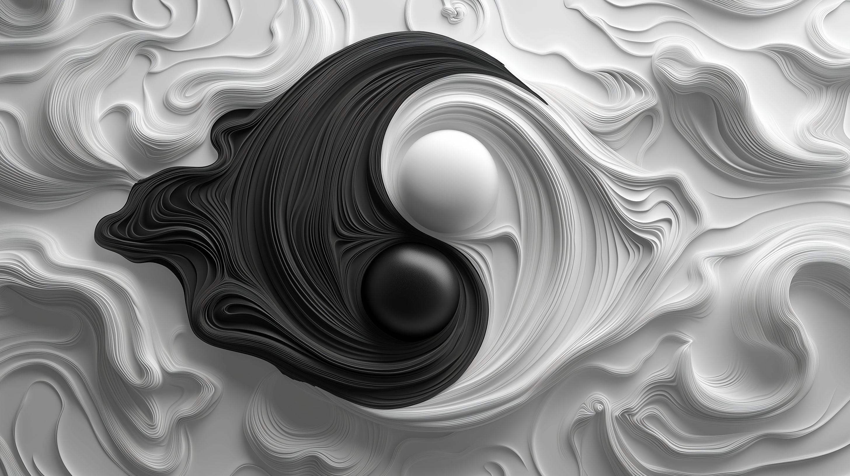 Dieses faszinierende Bild zeigt ein abstraktes 3D-Yin-Yang-Symbol, das Harmonie und Gleichgewicht symbolisiert. Die dynamische Komposition aus schwungvollen, kontrastreichen Schwarz-Weiß-Formen schafft eine hypnotische, beinahe skulpturale Ästhetik. Das Bild eignet sich hervorragend als Hintergrund, Tapete oder Poster für Anwendungen in den Bereichen Spiritualität, Meditation, Wellness und ganzheitliches Design. Als hochwertiges, kostenloses Stockfoto in hoher Auflösung unter der Creative Commons-Lizenz kann es vielseitig in Blogs, Newslettern und Social-Media-Beiträgen eingesetzt werden.