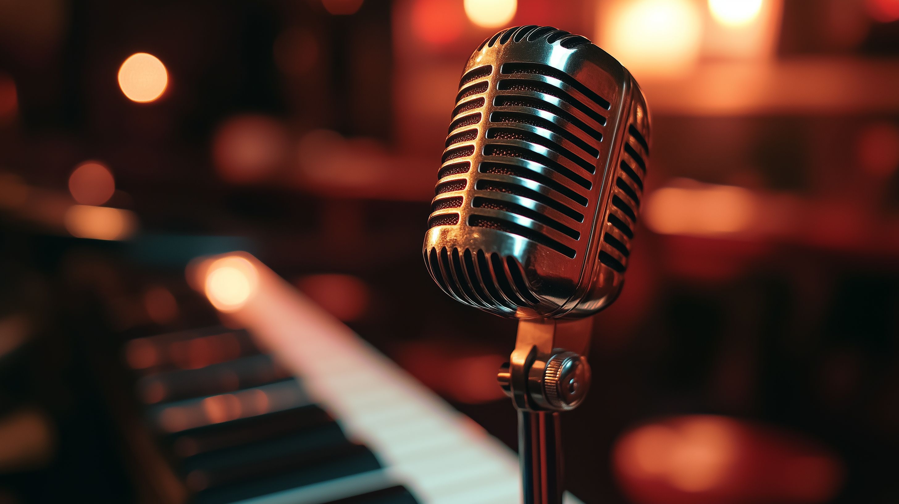 Dieses Foto zeigt ein vintage Mikrofon vor einem Klavier in einer gemütlichen, klassischen Clubatmosphäre. Die warmen, roten Lichter und der unscharfe Hintergrund schaffen eine einladende, nostalgische Stimmung, die perfekt für Musikanwendungen wie Konzertfotos, Blogbeiträge zu Musik oder Werbung für Musikevents geeignet ist. Als hochwertiges, kostenloses Stockfoto in hoher Auflösung unter Creative-Commons-Lizenz lässt sich dieses Bild vielseitig einsetzen.