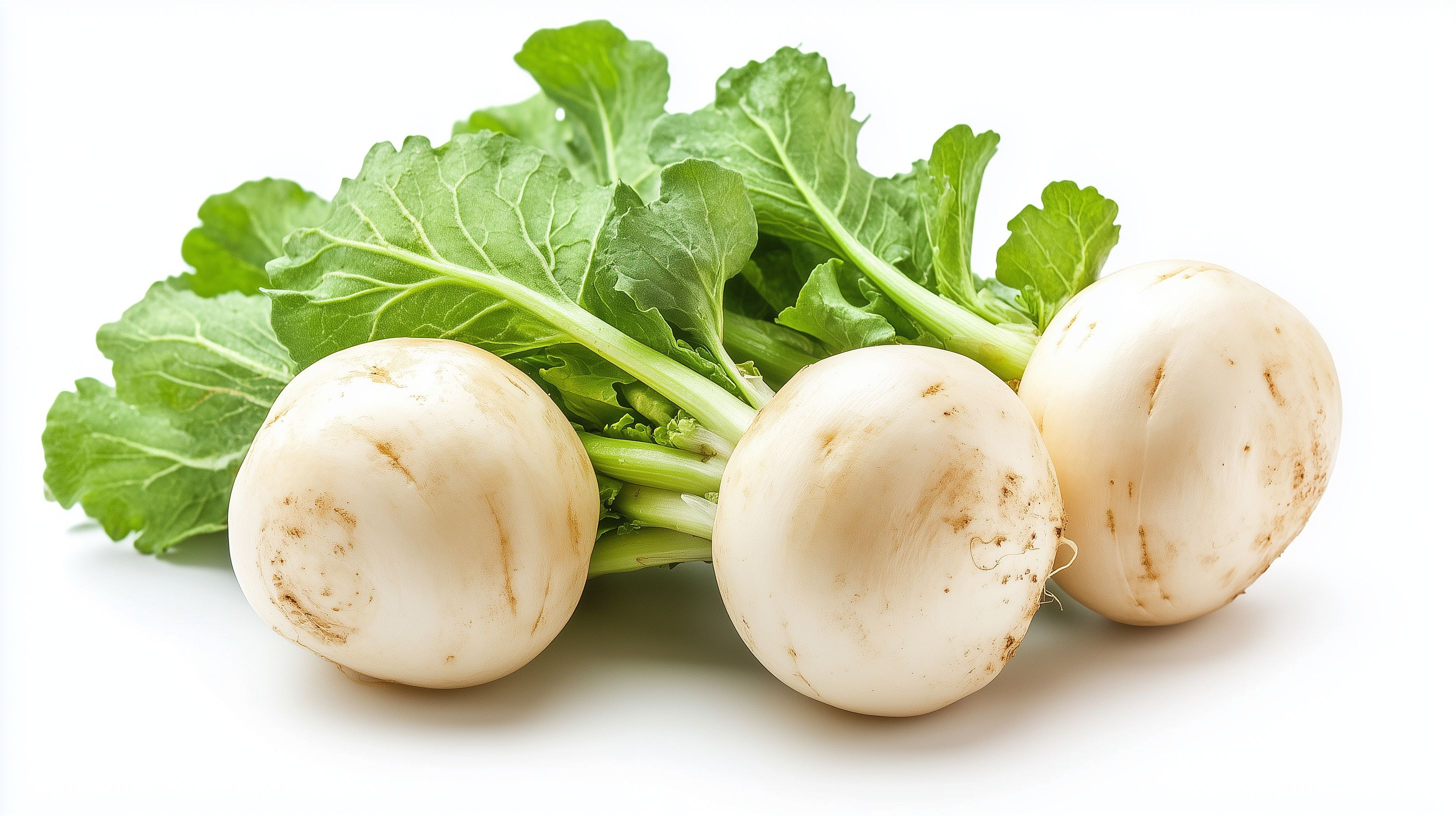 Dieses Bild zeigt eine Anordnung von frischen, weißen Winterrüben umgeben von ihren grünen Blättern auf einem hellen Hintergrund. Die Rüben haben eine leicht gerippte Oberfläche und wirken sehr frisch und knackig. Die Grünlaubblätter sind groß und gesund, sie verleihen dem Arrangement einen natürlichen, rustikalen Charakter. Dieses Stockfoto eignet sich hervorragend für den Einsatz in Blogbeiträgen, Newslettern oder Social-Media-Posts rund um die Themen gesunde Ernährung, vegetarische Rezepte oder Wintergemüse. Die hochauflösenden Fotos sind kostenfrei unter der Creative-Commons-Lizenz nutzbar.