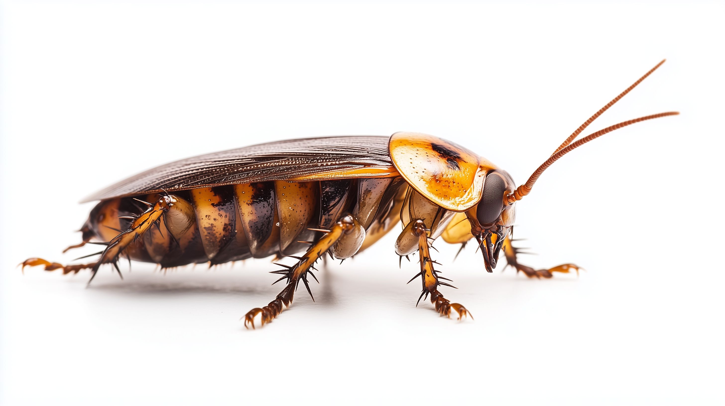 Dieses hochauflösende Stockfoto zeigt eine detailreiche Nahaufnahme einer braunen Schabe vor weißem Hintergrund. Das Foto bietet eine unverfälschte Perspektive auf dieses faszinierende Insekt mit seinen markanten Merkmalen wie den Antennen, den Beinen und der gestreiften Panzerung. Das Bild eignet sich hervorragend für den Einsatz in Blogs, Newslettern, sozialen Medien oder Werbematerialien, bei denen eine realistische Darstellung eines Käfers gewünscht ist. Das Foto steht unter der Creative-Commons-Lizenz zur freien Nutzung zur Verfügung.