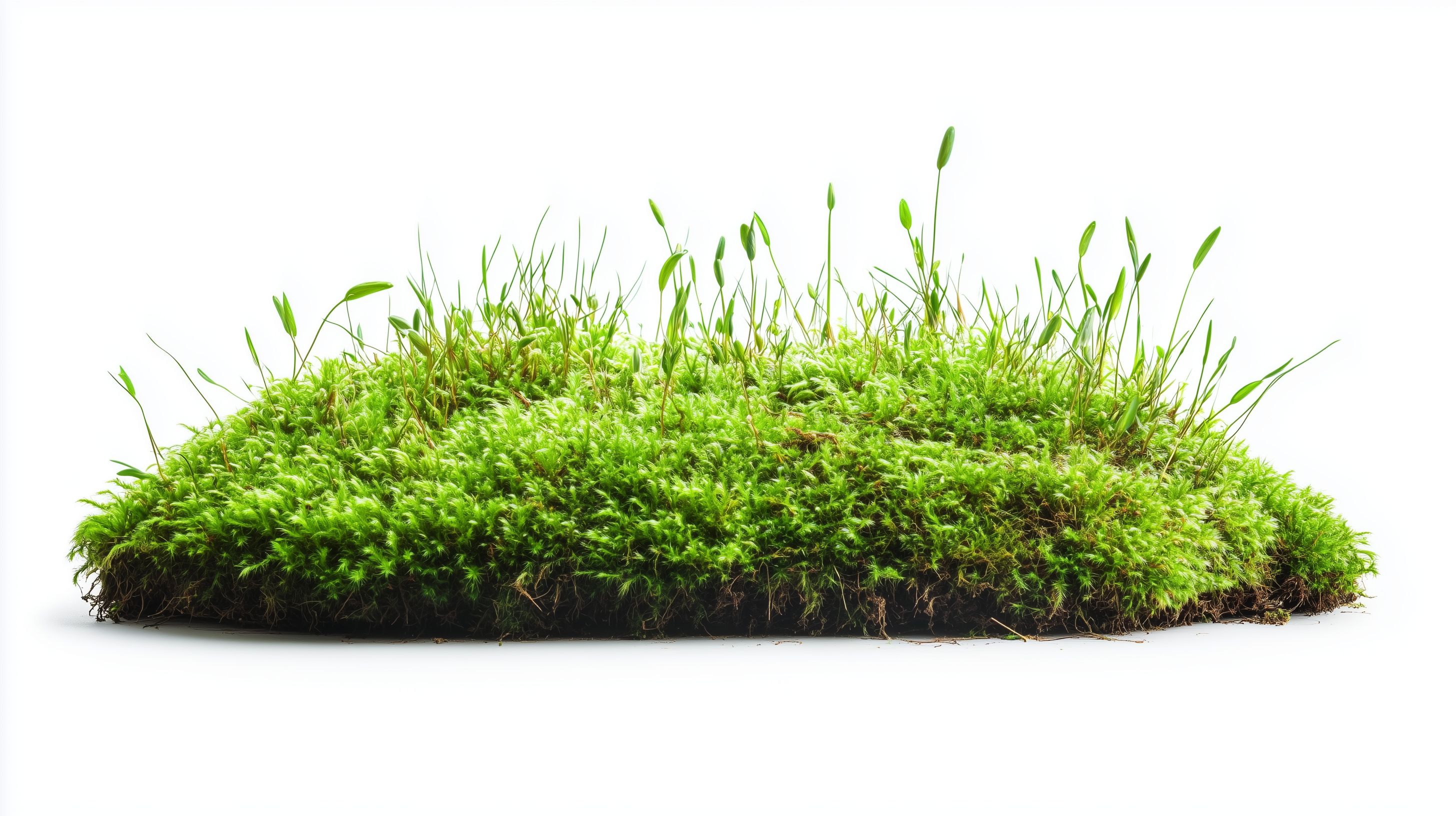 Dieses Foto zeigt einen natürlichen, üppigen Teppich aus frischem, grünem Moos und zarten Grashalmen auf weißem Hintergrund. Die Nahaufnahme gibt einen detaillierten Einblick in die faszinierende Textur und das lebendige Grün der Pflanzen. Dieses stimmungsvolle und pure Naturfoto eignet sich hervorragend als kostenloses Stockfoto für verschiedene Einsatzzwecke wie Blogbeiträge, Newsletter-Designs, Social-Media-Posts oder Werbematerialien zum Thema Umwelt, Nachhaltigkeit und Ökologie. Das Bild ist in hoher Auflösung und unter einer Creative-Commons-Lizenz frei verfügbar.