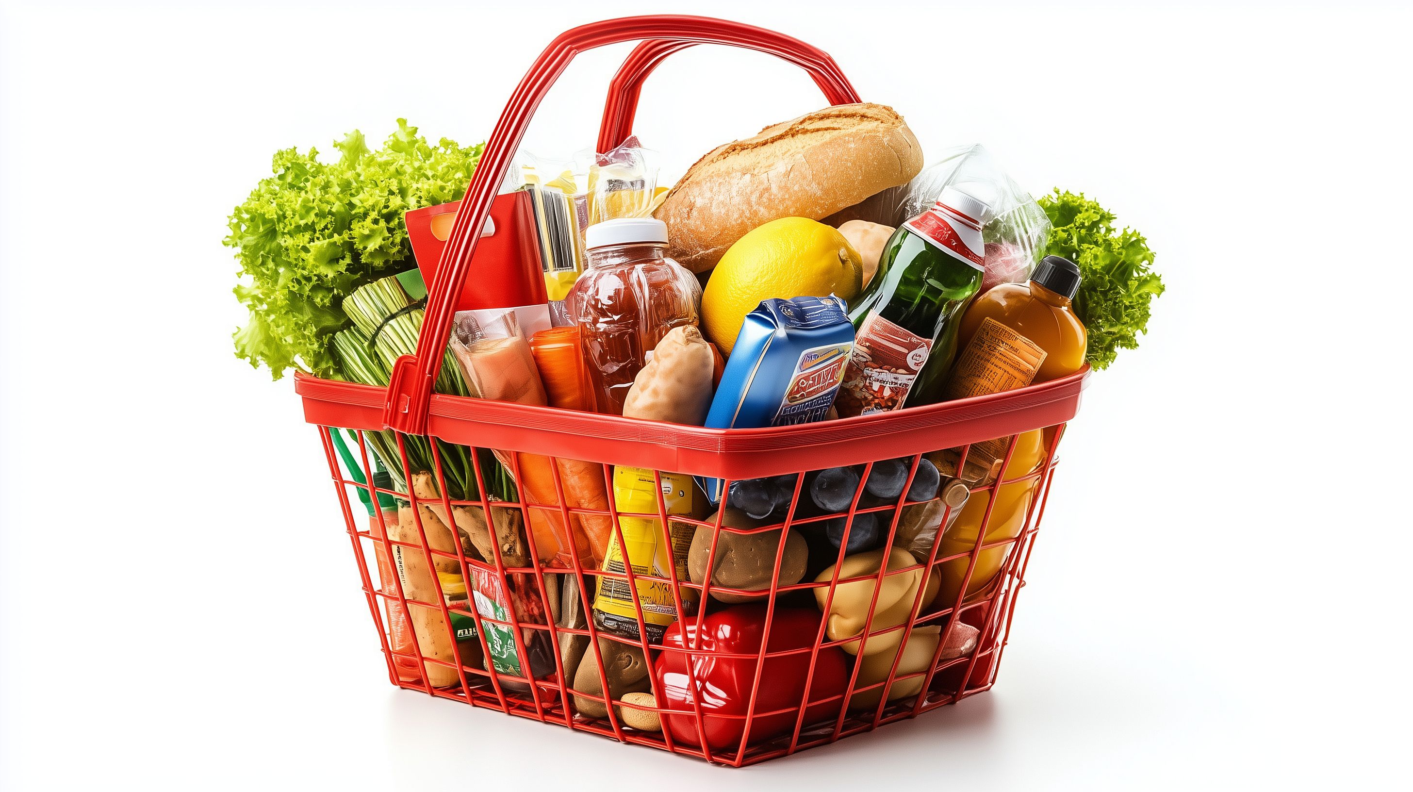 Dieses Foto zeigt einen roten Einkaufskorb gefüllt mit einer Vielzahl an Lebensmitteln und Produkten. Der Korb beinhaltet Salat, Brot, Früchte wie Zitronen, Gewürze, Öle und verschiedene Getränke. Die Anordnung der Produkte im Korb wirkt durchdacht und appetitlich. Dieses Stockfoto eignet sich hervorragend für Blogbeiträge, Werbung oder Social-Media-Posts zum Thema Ernährung, Kochen und gesunder Lebensstil. Es ist in hoher Auflösung verfügbar und kann unter der Creative-Commons-Lizenz kostenlos genutzt werden.