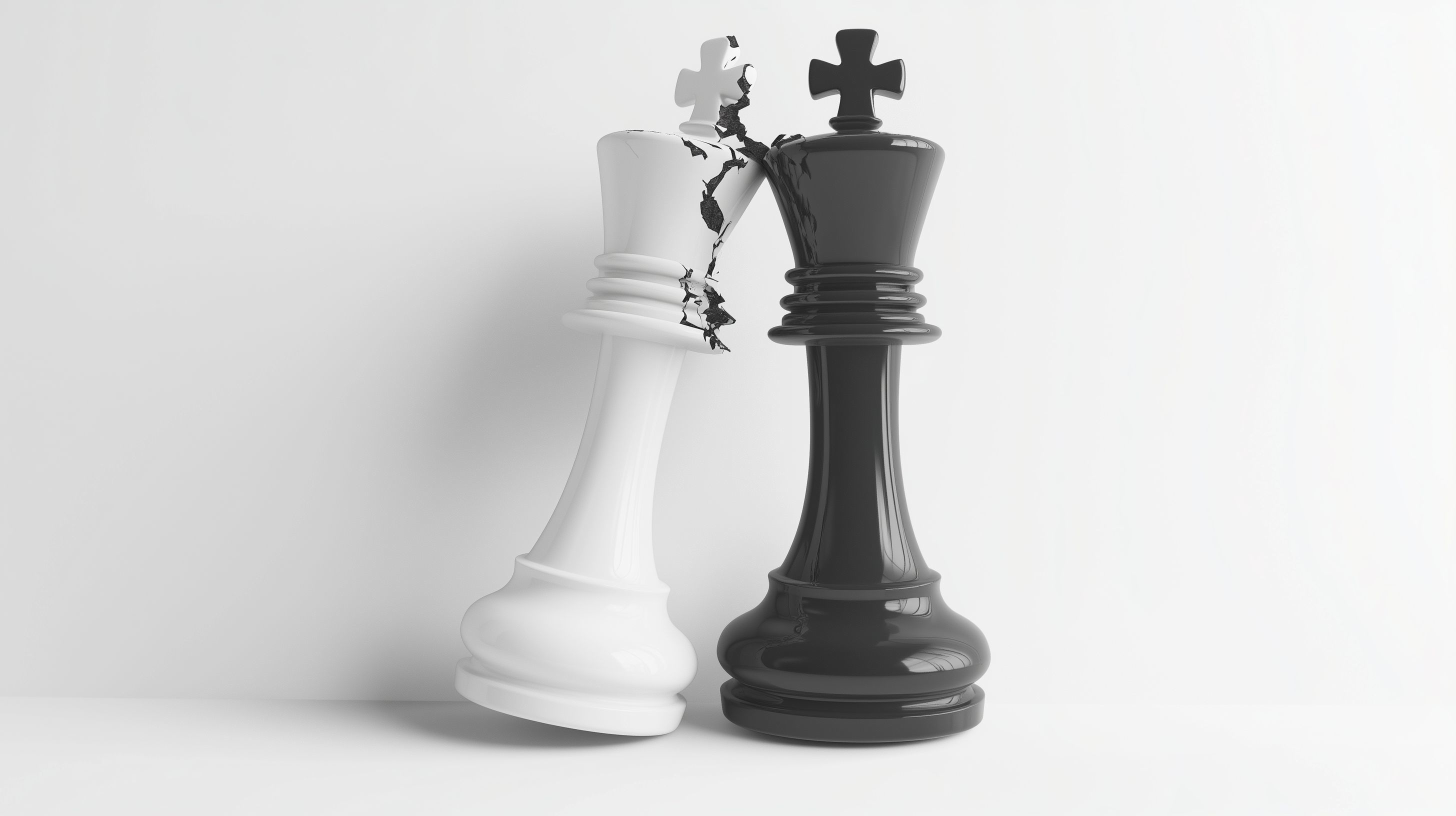 Das kontrastreich inszenierte Foto zeigt eine Szene aus dem Schachspiel. Der mächtige schwarze König ist dabei, den weißen König zu zerbrechen. Dieses eindrucksvolle Motiv transportiert Themen wie Macht, Wandel und Strategie auf eine symbolhafte Weise. Das Bild eignet sich hervorragend als Gestaltungselement für Präsentationen, Websites oder Social-Media-Kanäle, wenn es darum geht, Veränderungsprozesse, Wettbewerb oder Führungsthemen visuell zu transportieren.