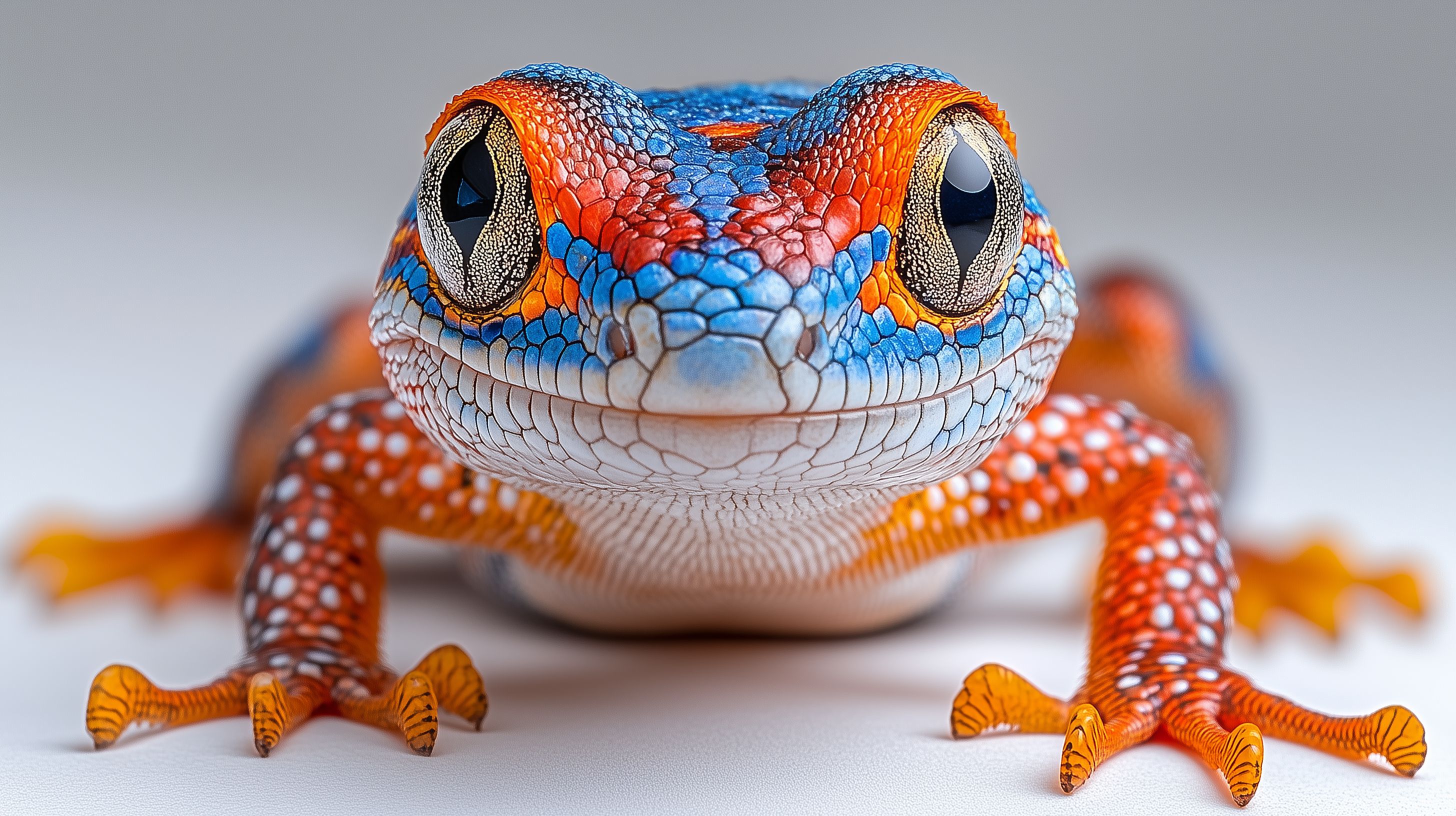 Diese Nahaufnahme zeigt einen farbenfrohen Gecko, der seine beeindruckenden und detaillierten Muster und Zeichnungen präsentiert. Der Fokus liegt auf dem Kopf des Reptils, das mit seinen auffälligen Augen und dem Spiel von Orange-, Blau- und Brauntönen einen faszinierenden Anblick bietet. Dieses hochauflösende Stockfoto eignet sich hervorragend für Blog-Beiträge, Newsletter-Gestaltung, Social-Media-Inhalte und andere kreative Projekte unter der Creative-Commons-Lizenz.