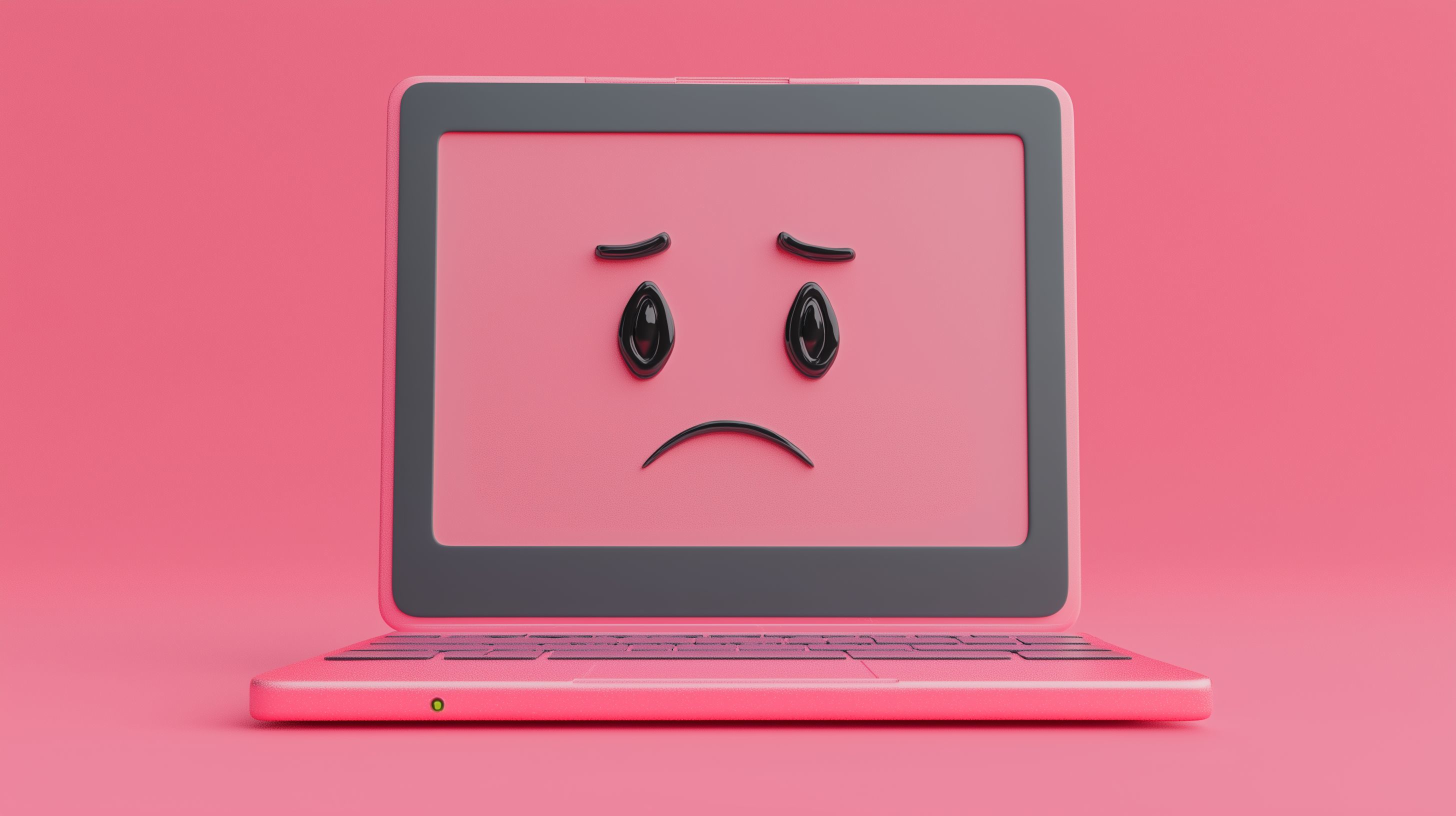 Diese 3D-Illustration zeigt einen Laptop mit einem traurigen Gesichtsausdruck. Das Gerät erscheint personifiziert und drückt durch seine Mimik Gefühle wie Frust, Niedergeschlagenheit oder Enttäuschung aus. Der pink-rote Hintergrund unterstreicht den emotionalen Charakter des Motivs. Dieses eindrucksvolle Stockfoto eignet sich hervorragend für den Einsatz in Blogbeiträgen, Newsletter-Designs oder Werbemitteln, die sich mit Themen wie Technikprobleme, Digitalisierung oder digitale Belastung auseinandersetzen. Das hochauflösende Bild ist unter einer Creative-Commons-Lizenz frei verwendbar.