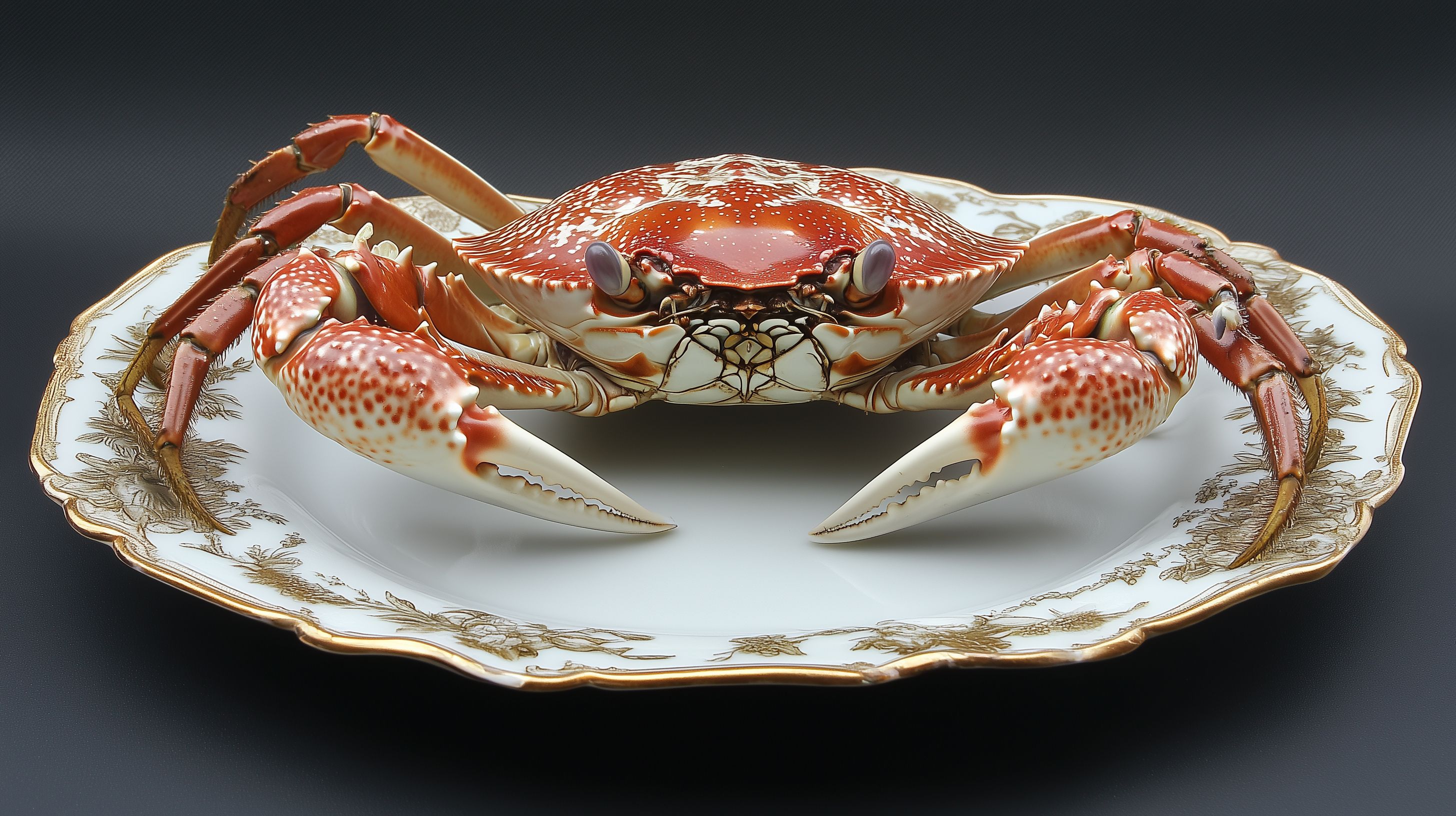 Dieses hochauflösende Foto zeigt eine köstliche rote Krabbe, präsentiert auf einem stilvollen, verzierten Porzellan-Teller vor dunklem Hintergrund. Die Krabbe ist detailliert und sorgfältig inszeniert, was sie zu einem perfekten Motiv für Lebensmittel-, Catering- oder Restaurantfotografie macht. Das Bild strahlt Eleganz und Geschmack aus und eignet sich hervorragend für Verwendungen in Blogs, Newslettern, auf Social-Media-Kanälen oder in Werbematerialien, bei denen hochwertige, kostenfreie Stockfotos in hoher Auflösung gewünscht sind. Das Foto steht unter der Creative-Commons-Lizenz und kann daher frei genutzt werden.