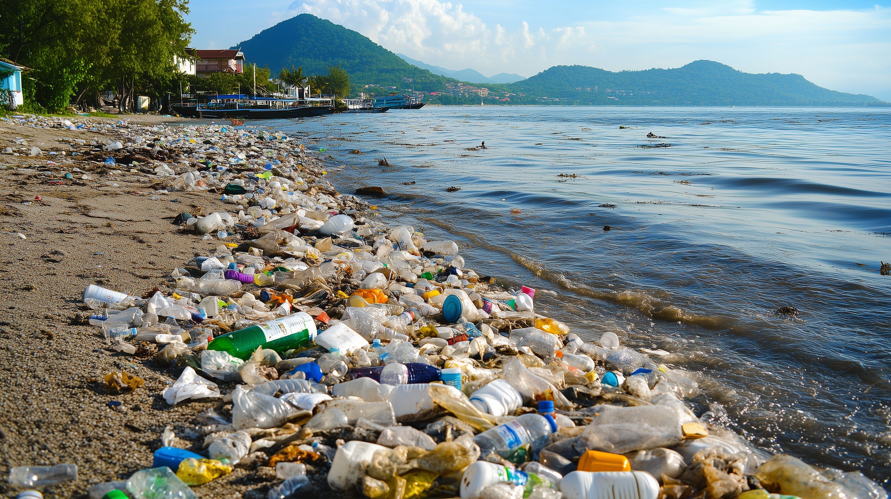 Das Foto zeigt eine Szenerie am Ufer eines Sees oder Meeres, die von massiver Verschmutzung durch Plastikabfall geprägt ist. Im Hintergrund sind malerische Berge zu sehen, die einen beeindruckenden natürlichen Kontrast zu der beunruhigenden Umweltverschmutzung bilden. Dieses Stockfoto eignet sich gut für Blogbeiträge, Newsletter oder Social-Media-Kampagnen zum Thema Umweltschutz und Nachhaltigkeit. Es vermittelt eindrucksvoll die negativen Auswirkungen von Plastikabfall auf unsere Ökosysteme und regt zum Nachdenken an. Das Bild ist in hoher Auflösung kostenlos als Creative-Commons-Lizenz verfügbar.