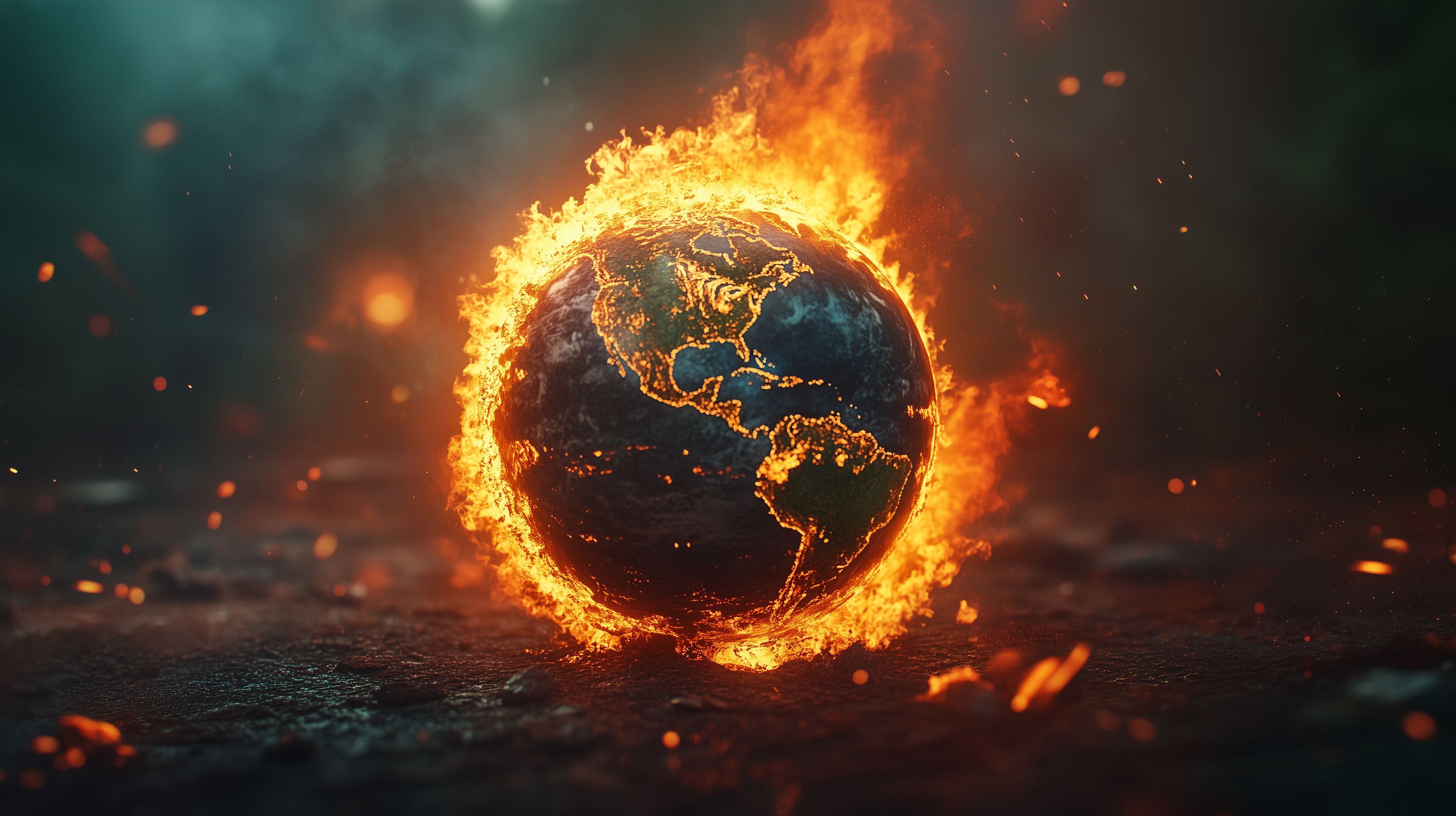Das Bild zeigt einen brennenden Globus, der die Erde in Flammen gehüllt darstellt. Die kraftvollen, orangeroten Flammen und Funken verleihen der Szene eine bedrohliche und apokalyptische Atmosphäre. Dieses Motiv kann als symbolische Warnung vor den Folgen des Klimawandels und der globalen Erwärmung interpretiert werden. Das Foto lässt sich in Berichten, Artikeln oder Präsentationen zum Thema Nachhaltigkeit, Umweltschutz und Ökologie einsetzen. Als hochwertiges, kostenfreies Stockfoto in hoher Auflösung unter Creative-Commons-Lizenz eignet es sich hervorragend für den Einsatz in Blogs, Newslettern oder Social-Media-Beiträgen.