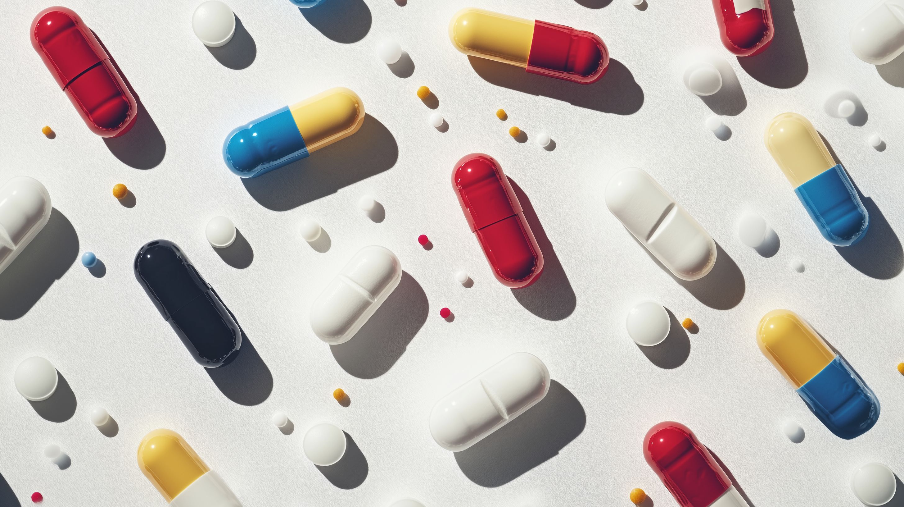 Dieses Bild zeigt eine künstlerisch arrangierte Sammlung bunter Medikamentenkapseln auf weißem Hintergrund. Die verschiedenfarbigen, ovalen Pillen sind in einer geometrischen Anordnung platziert, die durch Schatten und Licht eine minimalistisch-abstrakte Ästhetik erhält. Dieses Foto eignet sich hervorragend als Hintergrundbild oder Grafikelement für Werbekampagnen, Blogbeiträge oder Social-Media-Posts rund um das Thema Gesundheit, Medizin und Pharmazie. Als hochwertiges, kostenloses Stockfoto unter Creative-Commons-Lizenz lässt es sich vielseitig in digitalen Medien einsetzen.