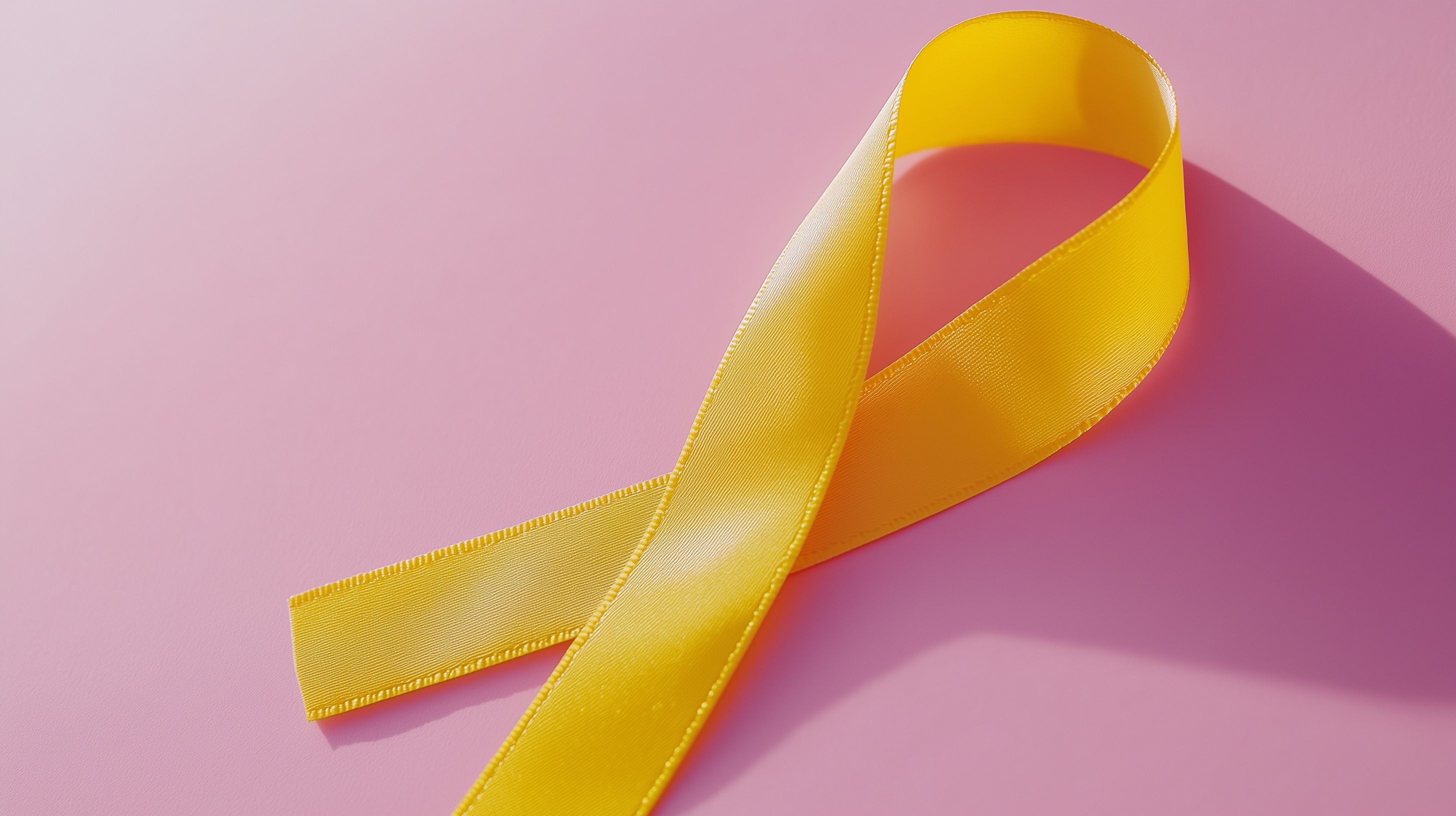 Das Bild zeigt ein einzelnes, leuchtend gelbes Band, das sich vor einem zarten rosa Hintergrund befindet. Das Band ist so platziert, dass es eine elegante, geschwungene Form bildet. Dieses Symbol steht häufig für das Bewusstsein und die Unterstützung von Krebs-Erkrankungen, insbesondere bei Kindern. Das Foto eignet sich hervorragend für den Einsatz in Blogs, Newslettern oder sozialen Medien im Kontext von Gesundheit, Wohltätigkeit und Solidarität. Als hochwertiges, kostenloses Stockfoto unter Creative-Commons-Lizenz kann es vielfältig genutzt werden.